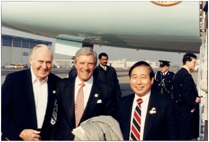 Bob Gavin, Chairman of Motorola, Commerce Secretary Robert A. Mosbacher and Winston Chen, CEO of Solectron