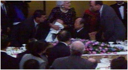 Mrs. Bush covered President Bush’s mouth. Source: NHK TV