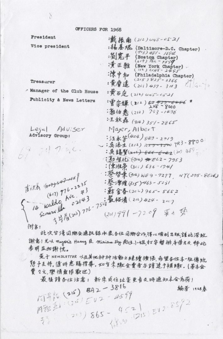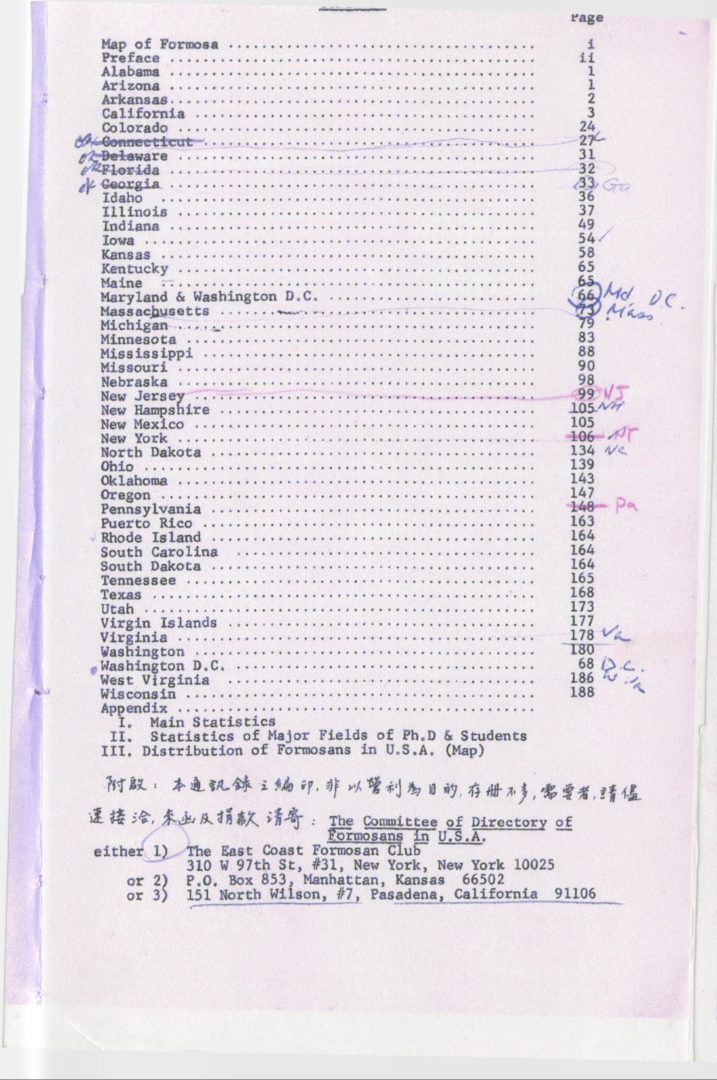 Directory of Formosans in the USA 全美台灣同鄉通訊錄