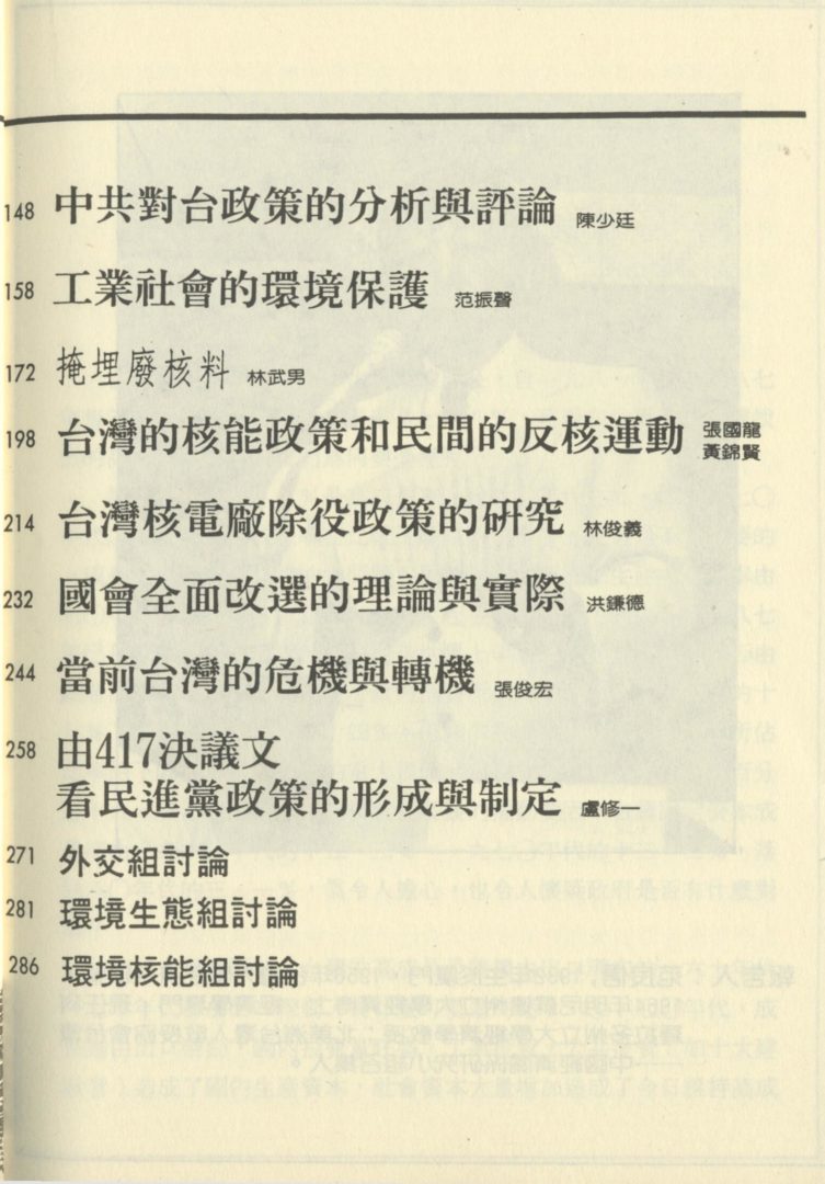 此次硏討會首次在台灣舉行,頗具歷史上意義,且由於論文及討內容均非常豐富精彩、切中時宜,乃決定編輯成册(蒙美國的慈淵基金大力贊助,謹此致謝)供關心台灣的海內外人士參考,俾對台灣的國家社會及人民有所助益,並激勵台灣朝野以愛護台灣之心志,使台灣成爲自立自主的美麗島國!