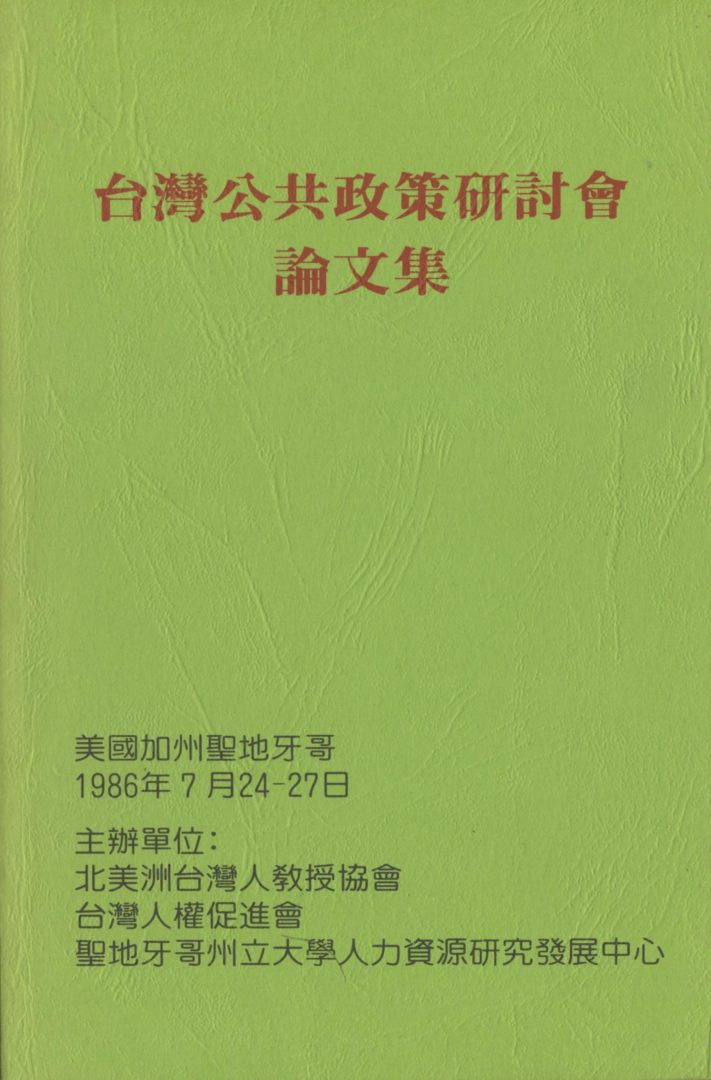 論文部分計有16篇中文及2篇英文。陳炳祀敎授的論文原以英文寫成,在編印時依作者的要求由編者委託李淸雲女士譯成中文。其餘17篇論文則完全依照作者提出的原稿。這18篇論文中,有幾篇曾於會前或會後發表於報刊雜誌,但爲求完整起見,都再收入這本論文集。令人遺憾的是,有幾位與會學者未能於會後按時提出完稿,爲了趕在1987年「台灣公共政策硏討會」開會之前發行這本論文集,只得割愛,謹向這幾位作者致歉。