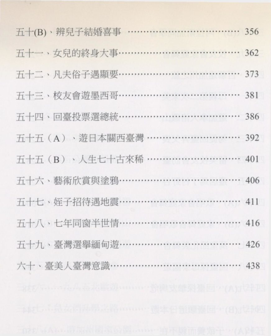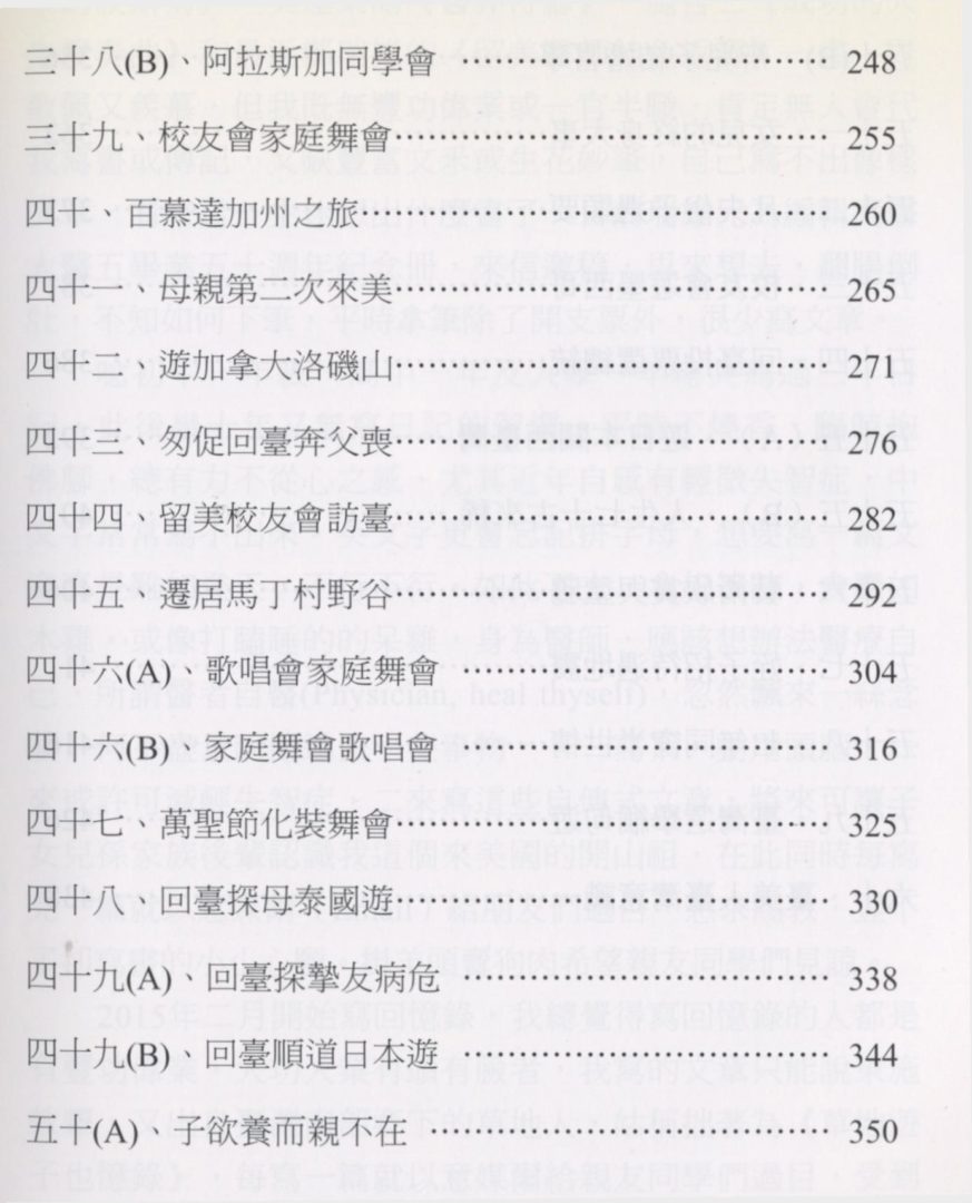頭,何不盡量回憶過去一些事物寫下,動用頭腦,一來或許可減輕失智症,二來寫這些自傳式文章,將來可讓子女兒孫家族後輩認識我這個來美國的開山祖,在此同時每寫完一篇就以意媒爾(Email)給朋友們過目,懇求賜教,豈不了卻寫書的小小心願。掛羊頭賣拘肉希望親友同學們見諒。