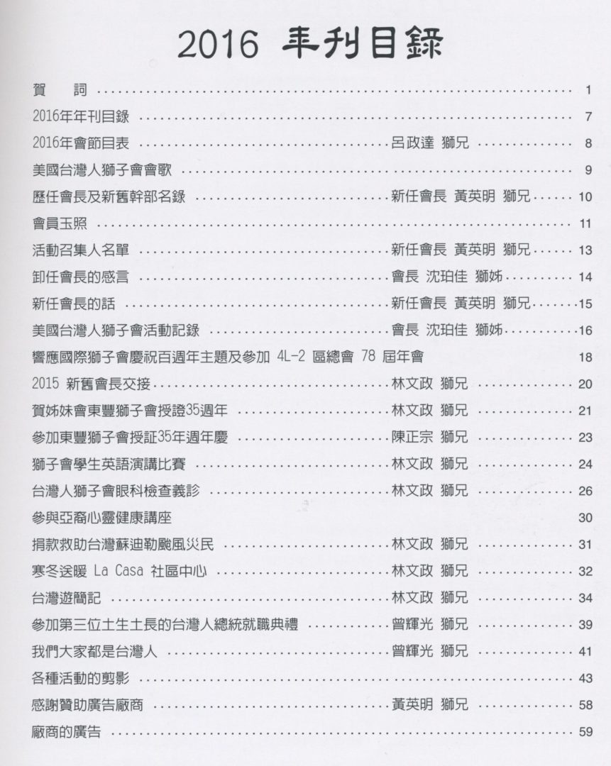 美國台灣人獅子會2016年刊