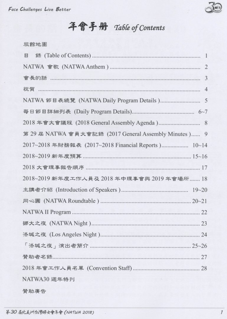 30th North America Taiwanese Women’s Association Annual Convention 第30屆北美洲台灣婦女會年會手冊
