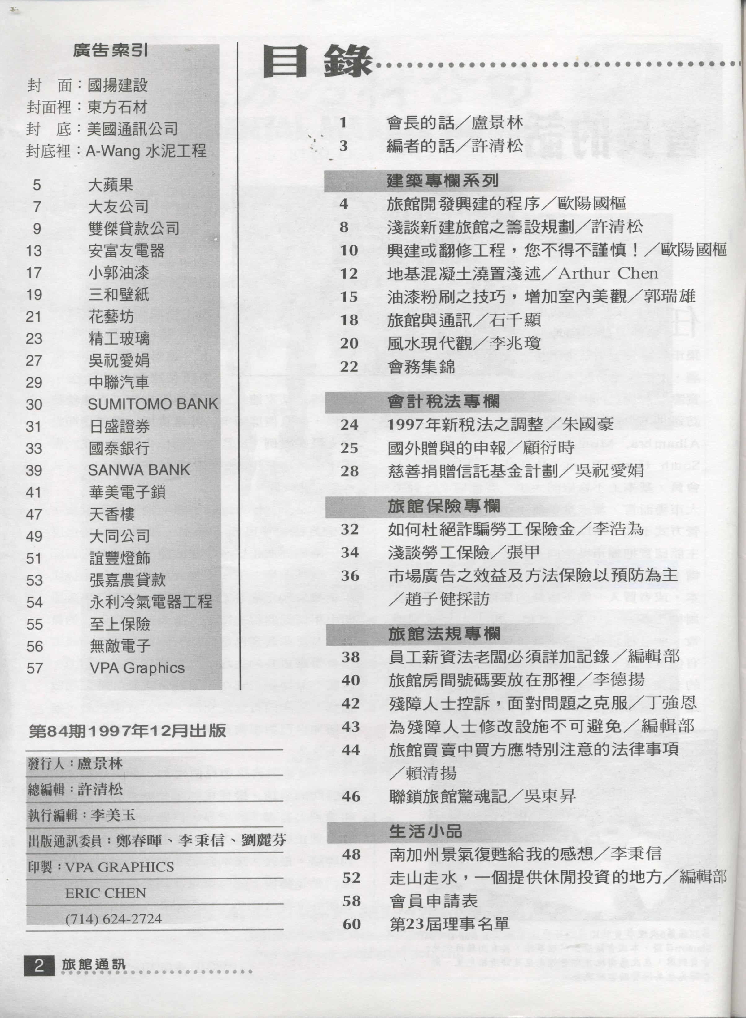 南加州台灣旅館業同業公會-旅館通訊