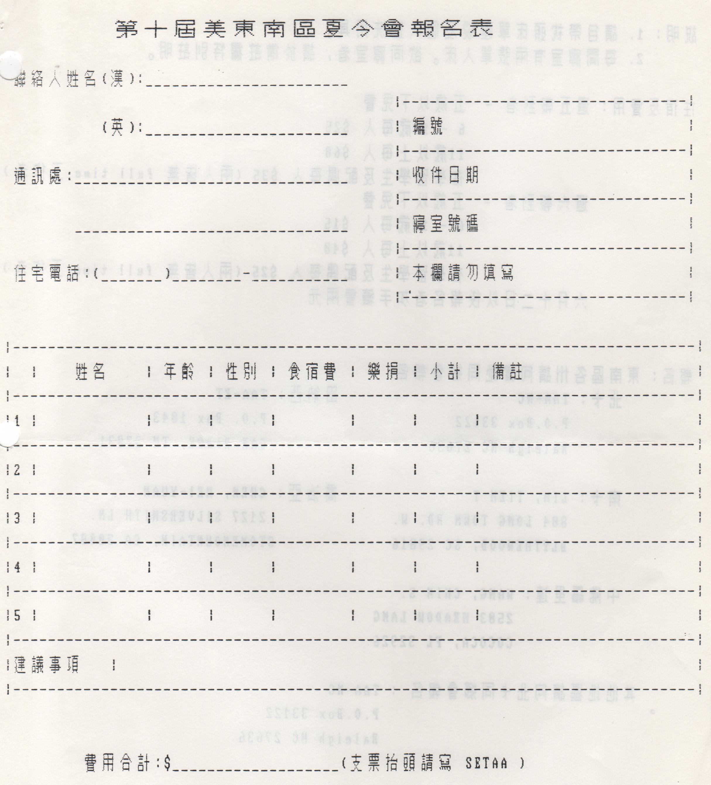 東南區各州,請直接向當地同鄕會報名其他地區,請向北卡同鄕會報名TAA-NC P-0-B0X33122