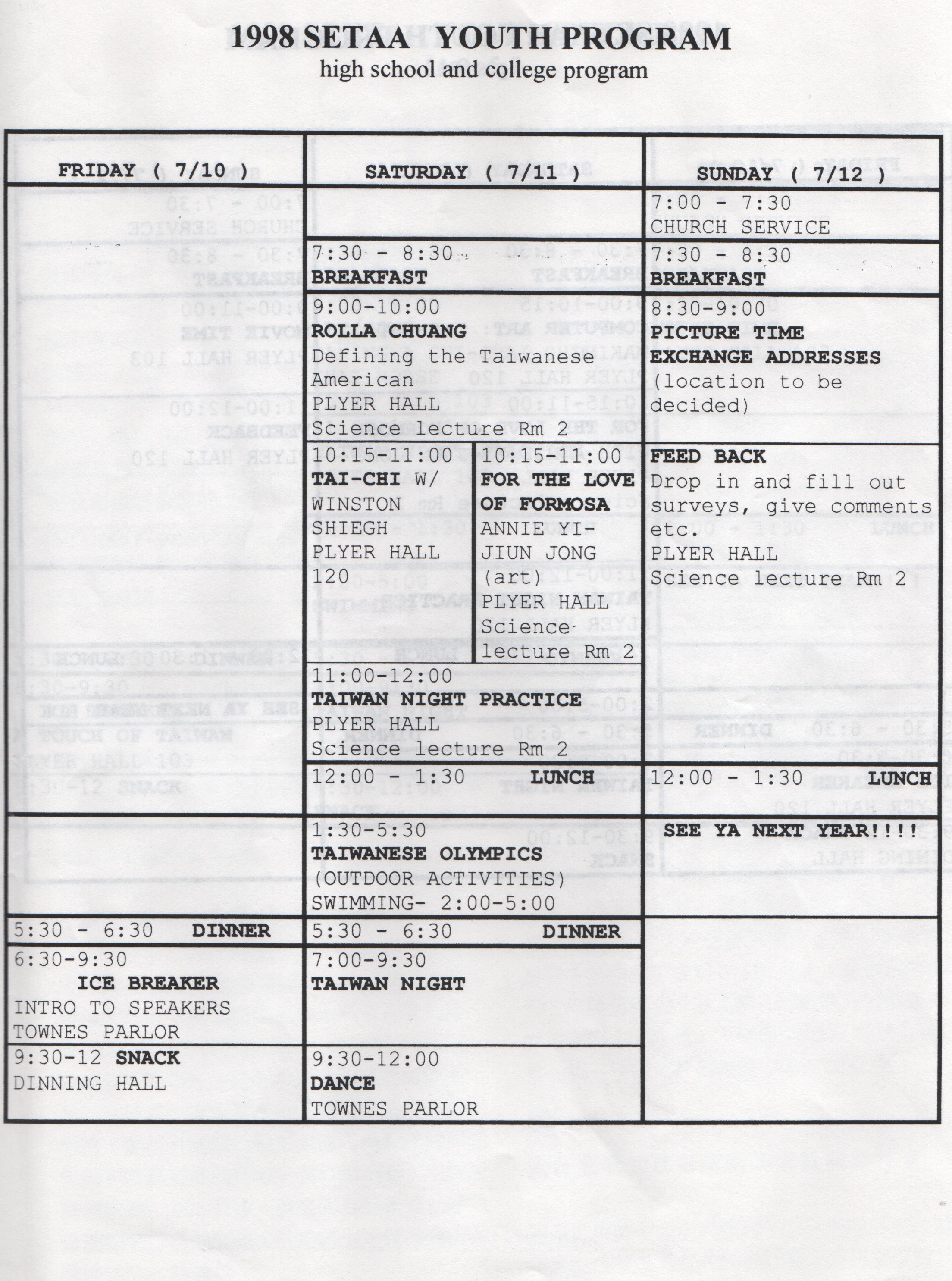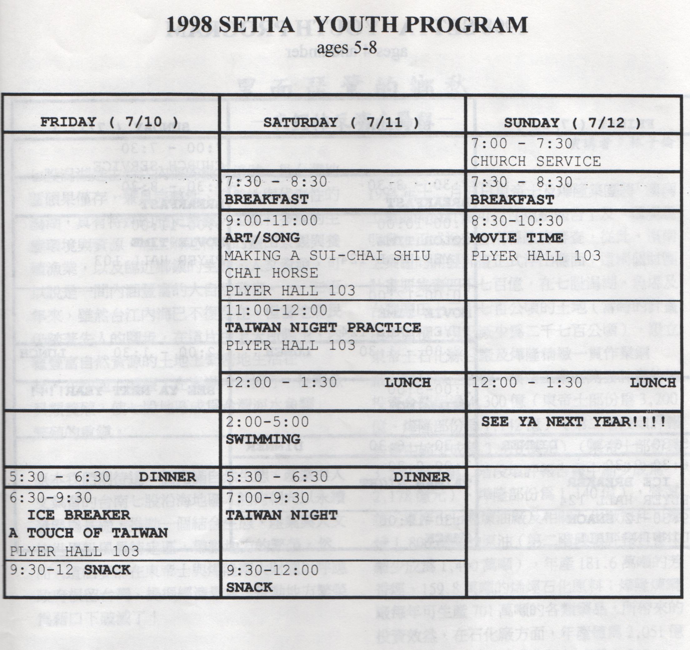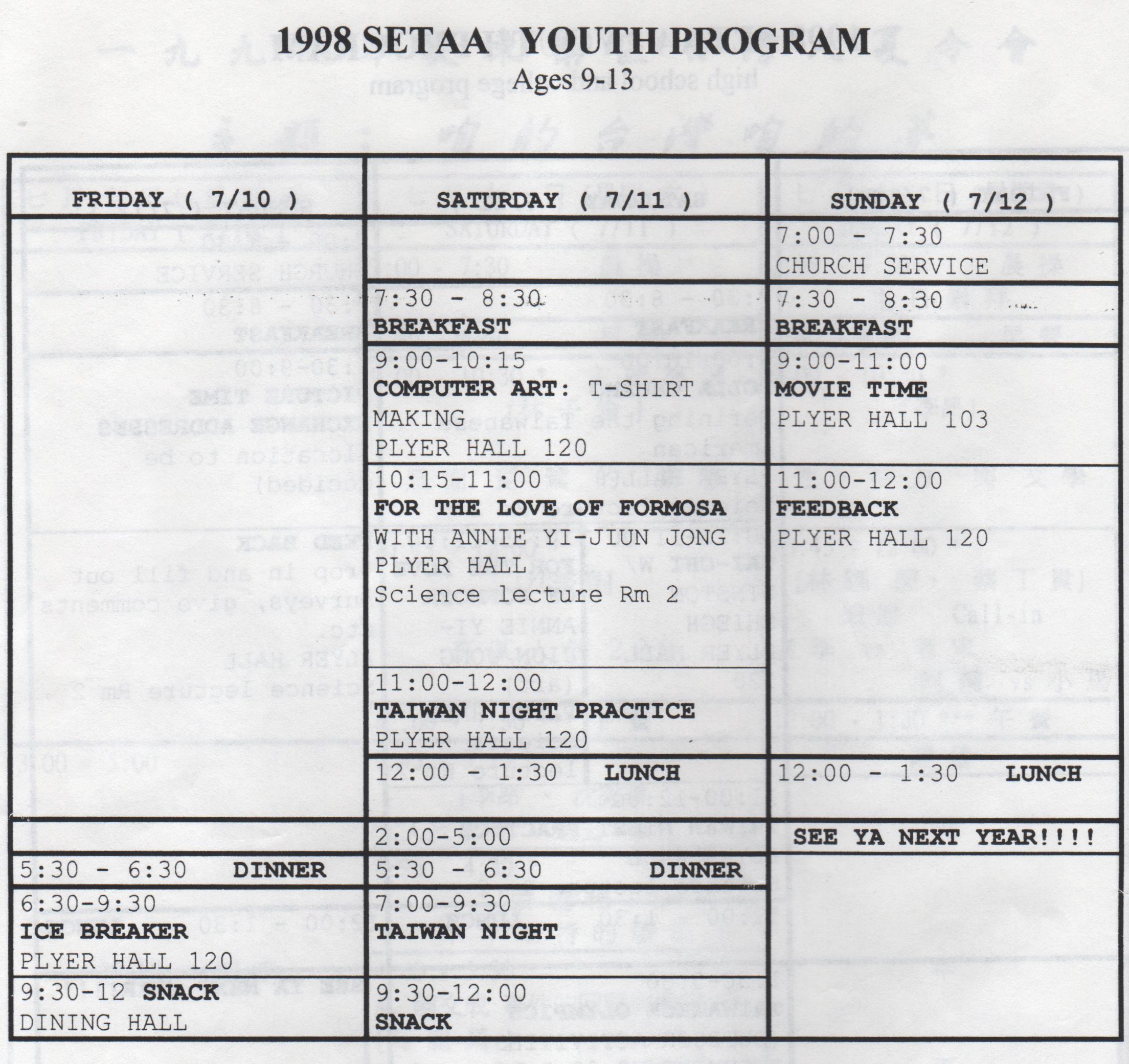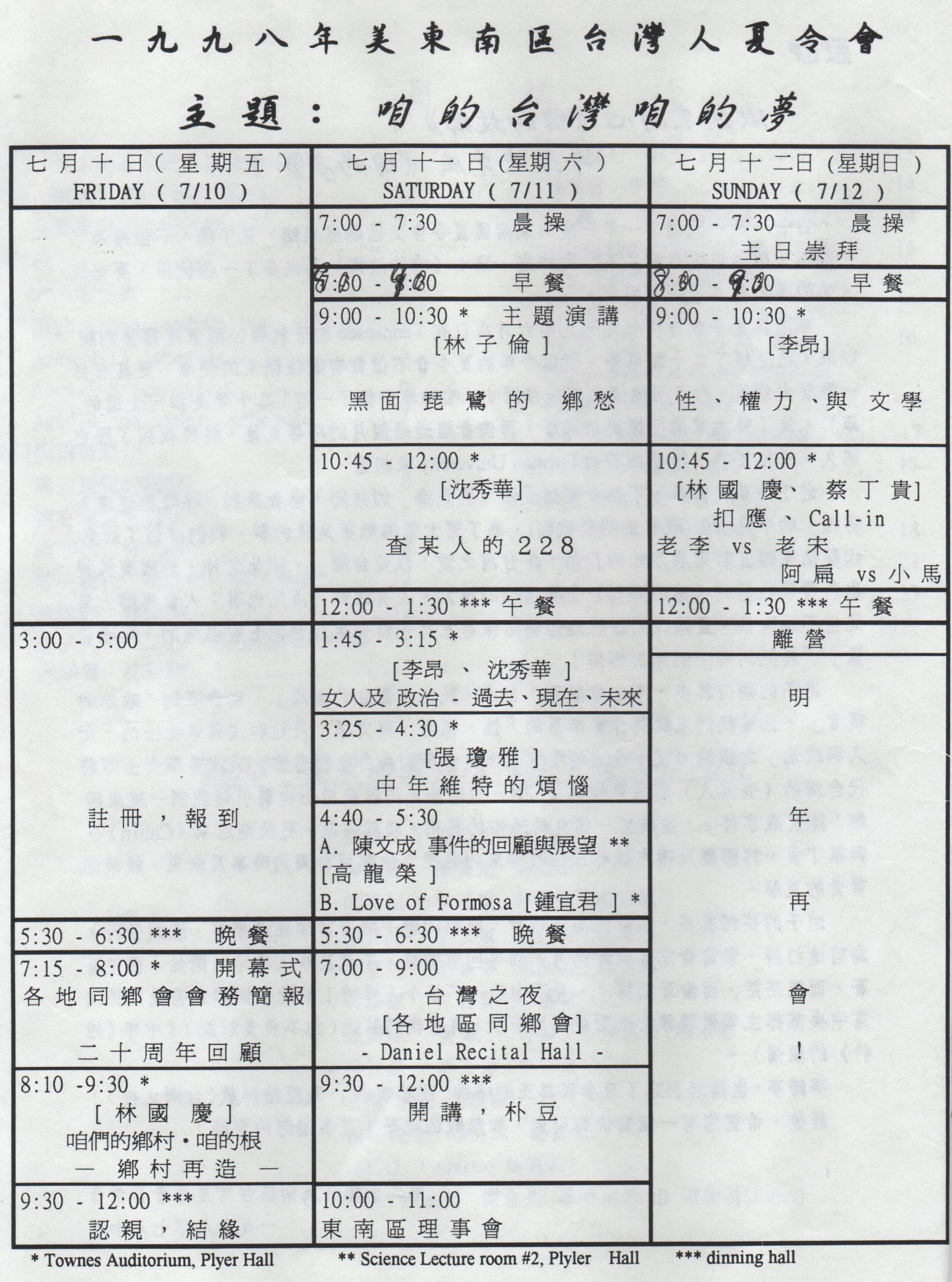 1 9 9 8美東南區台灣人夏令會