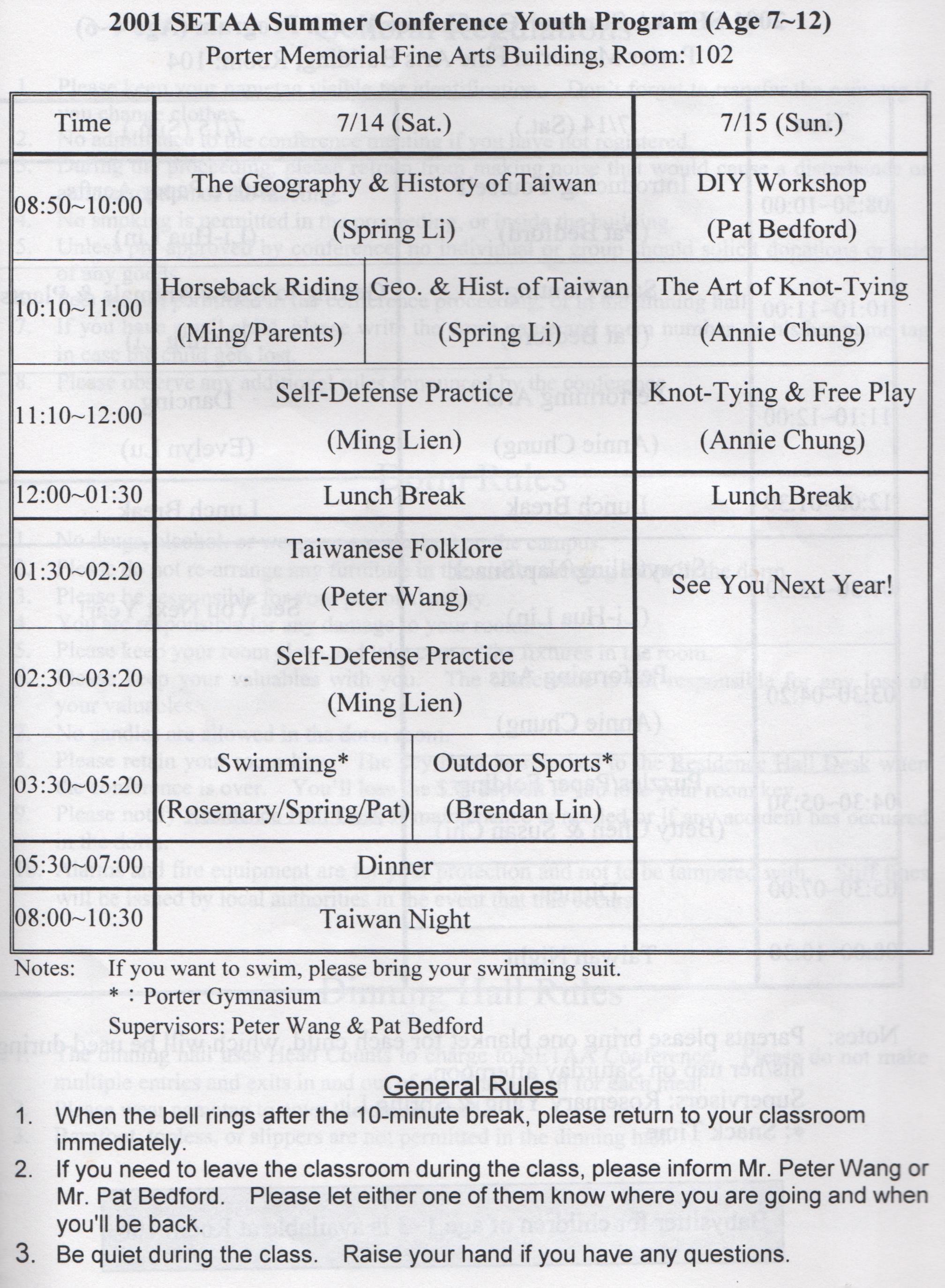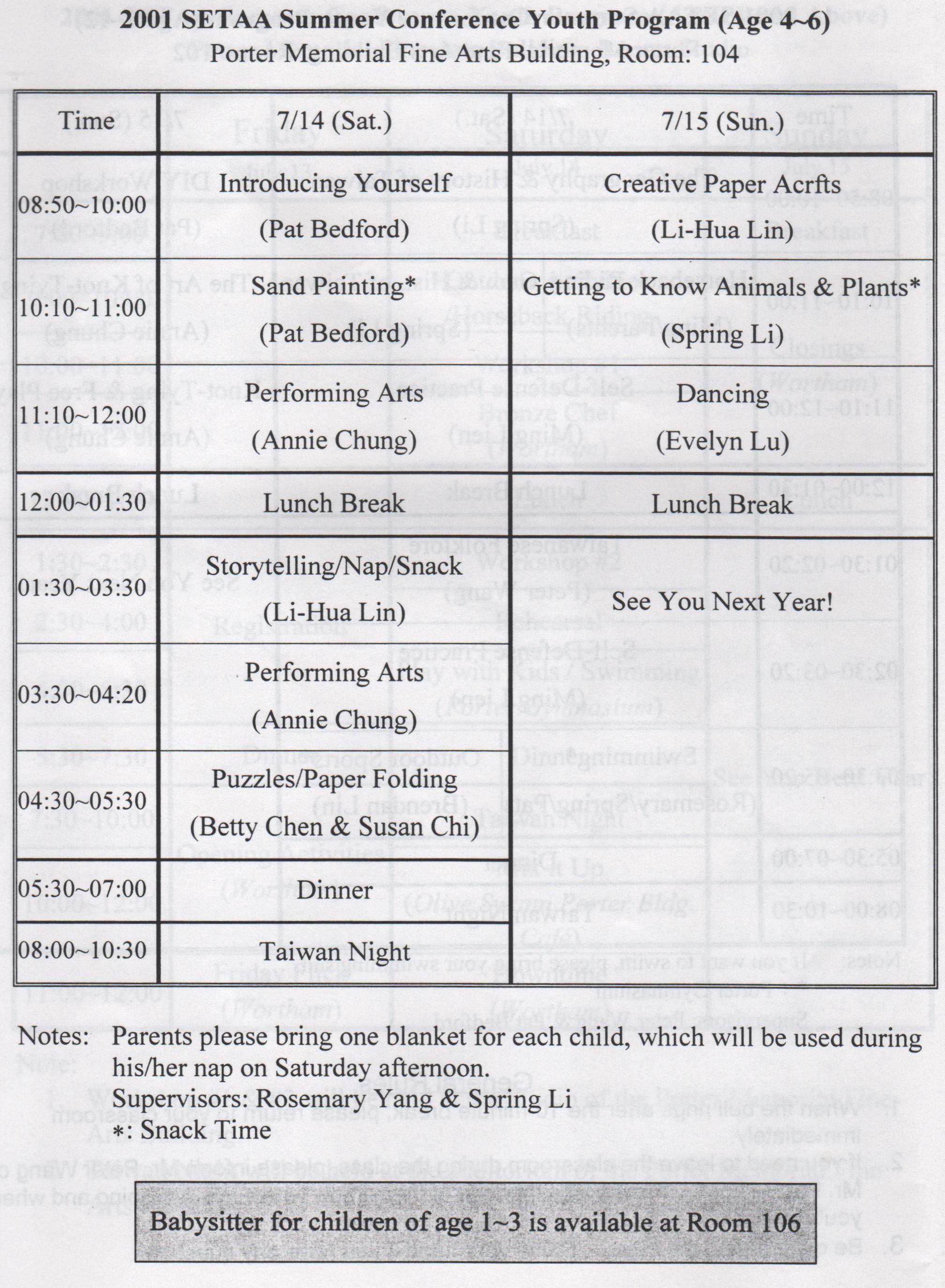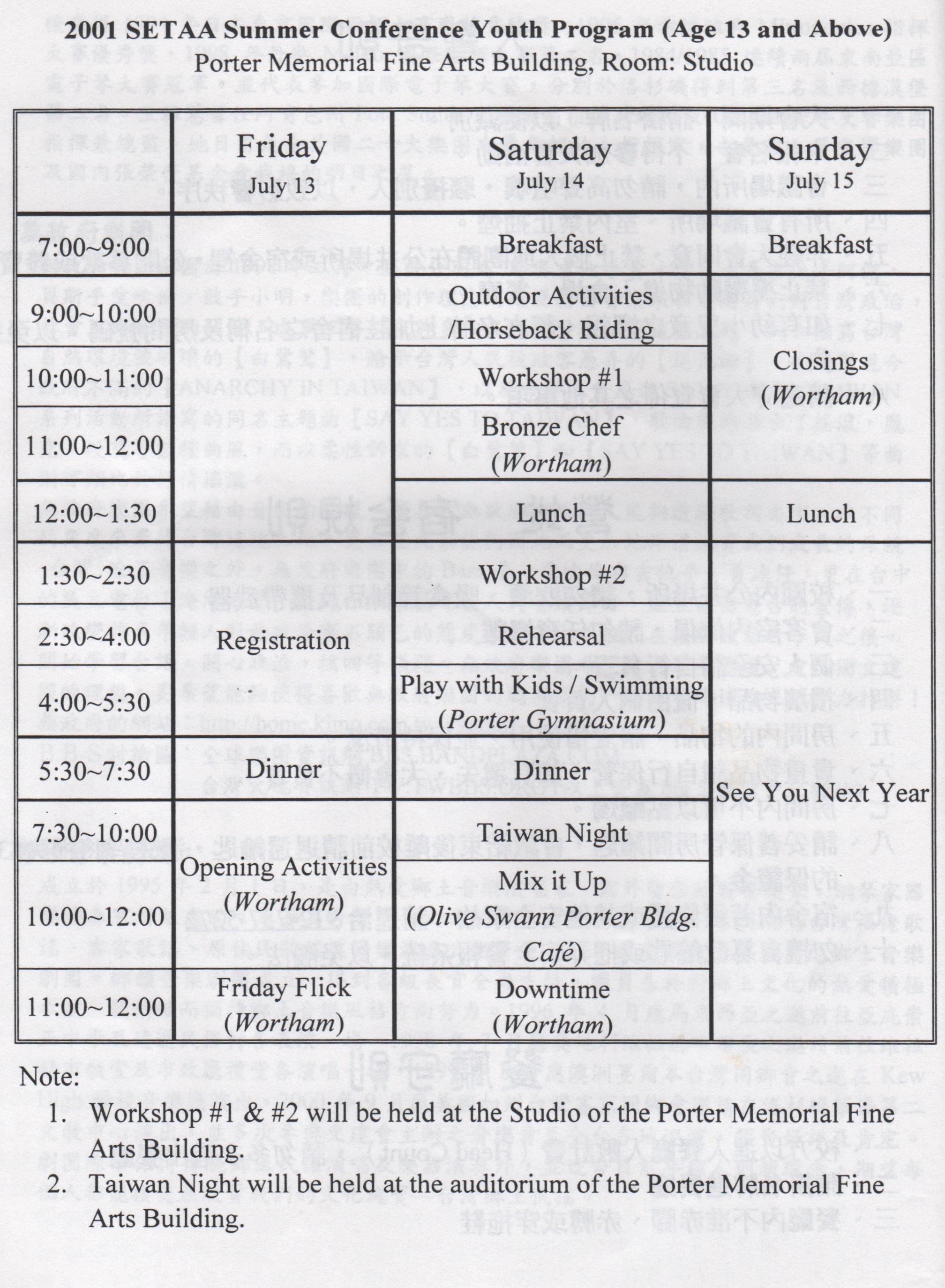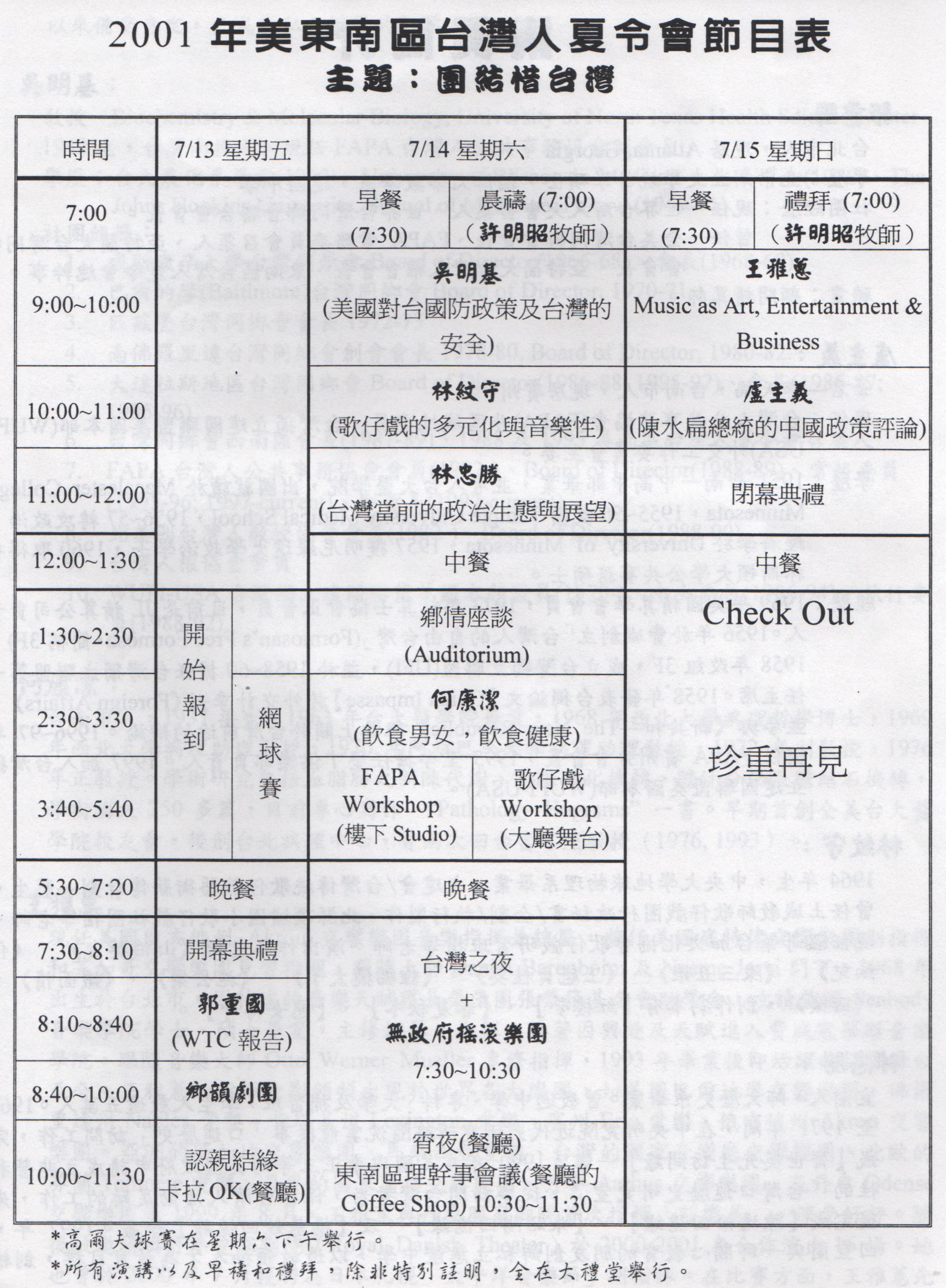2001年美東南區台灣人夏令會竭誠歡迎您來參與