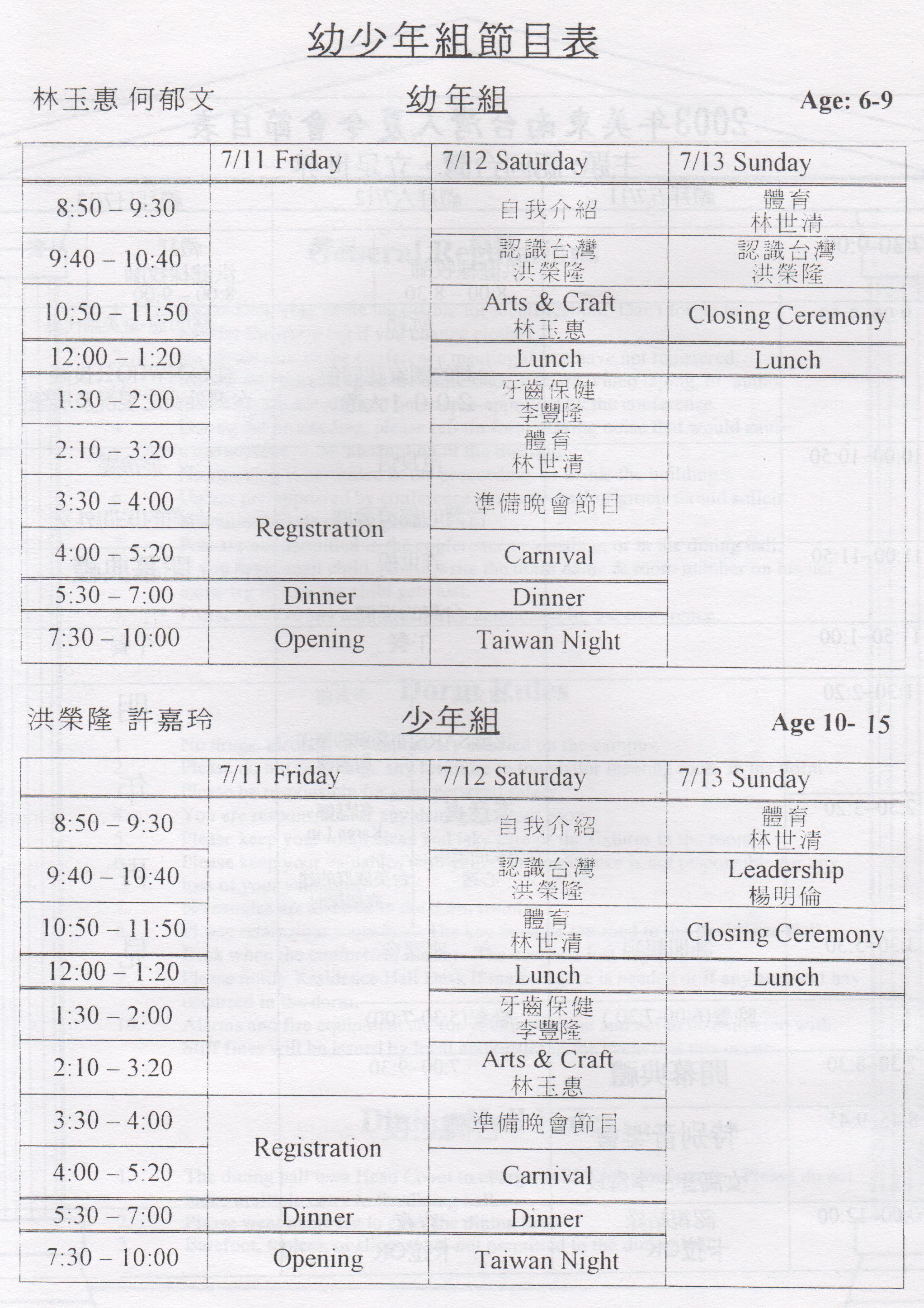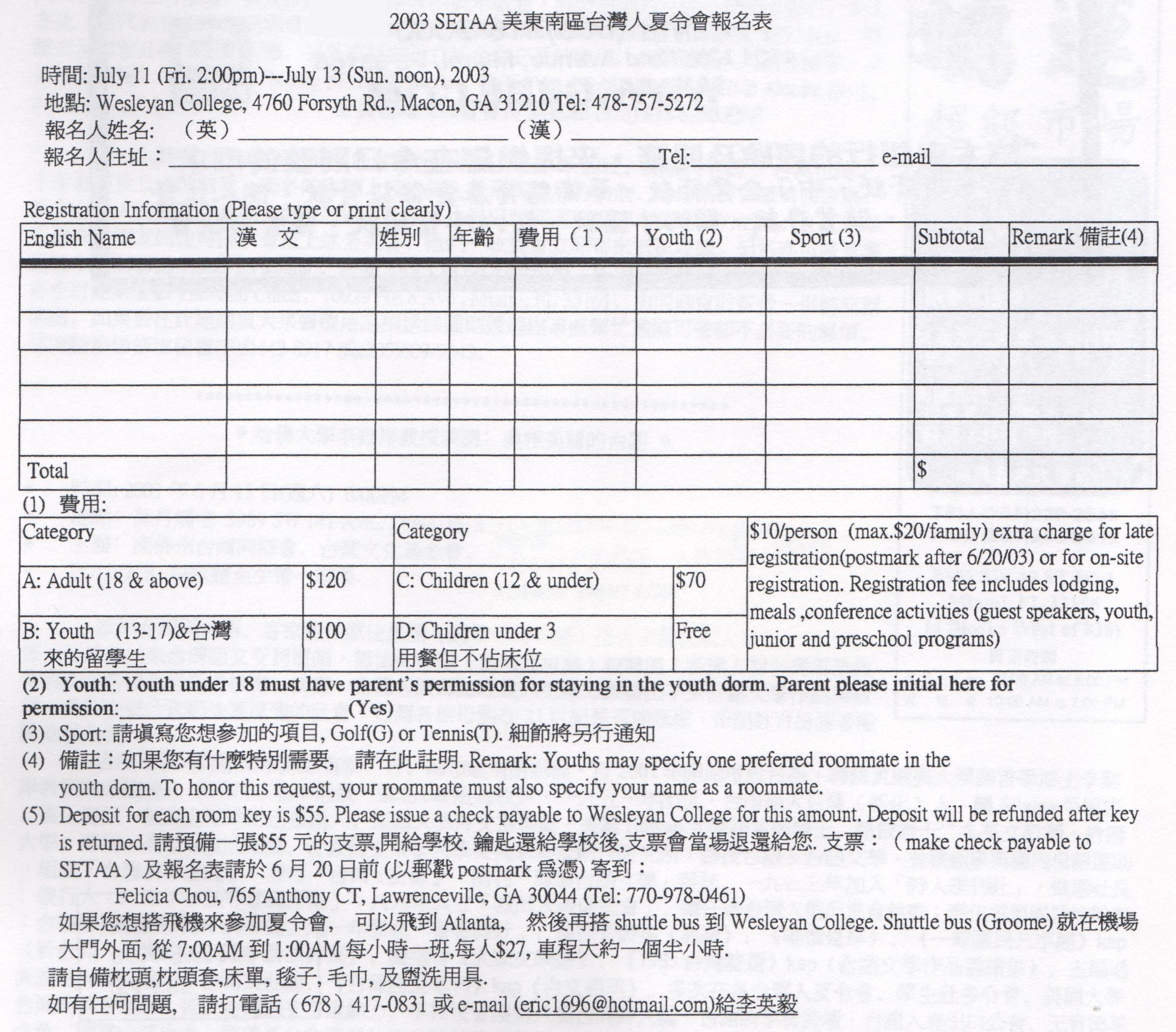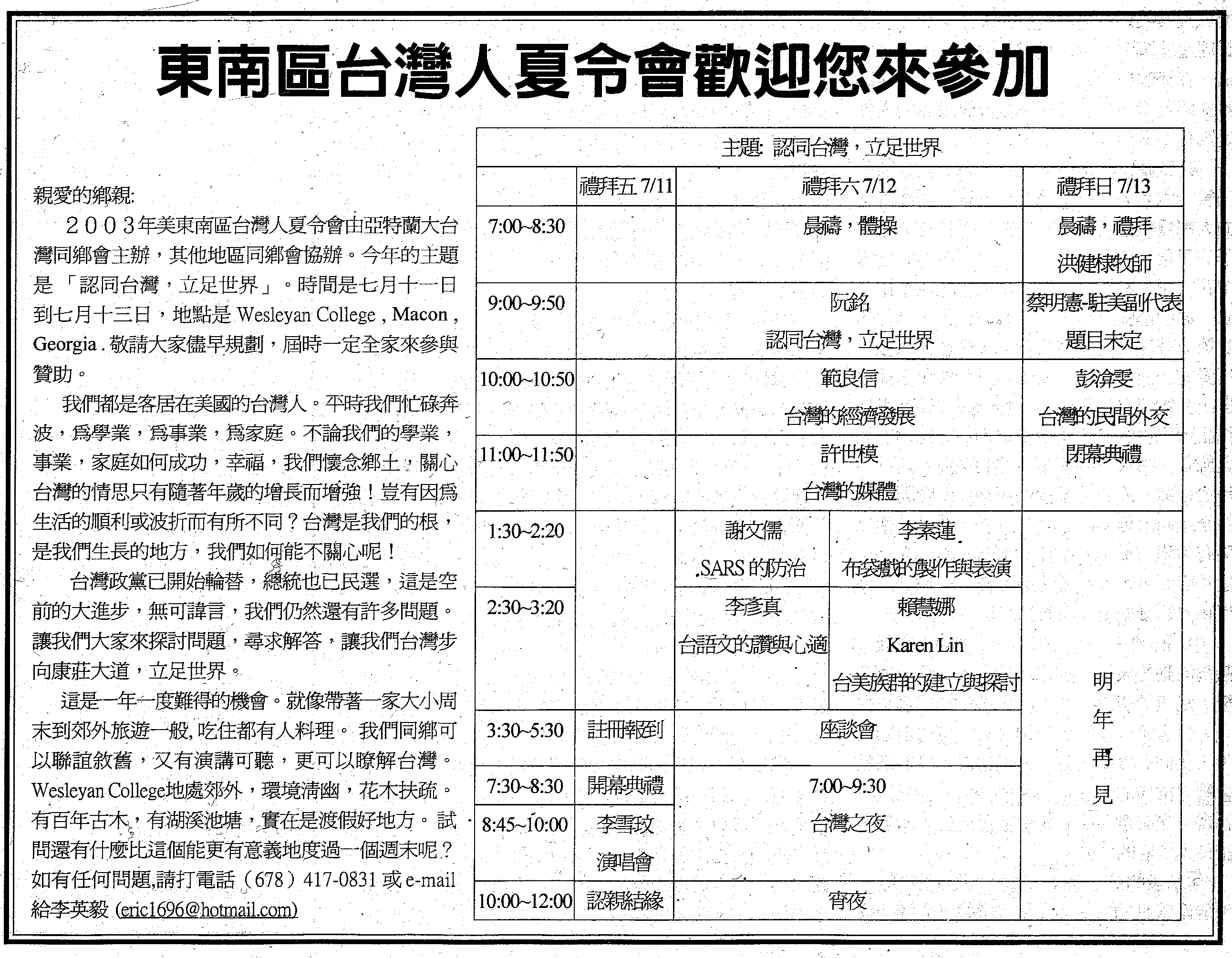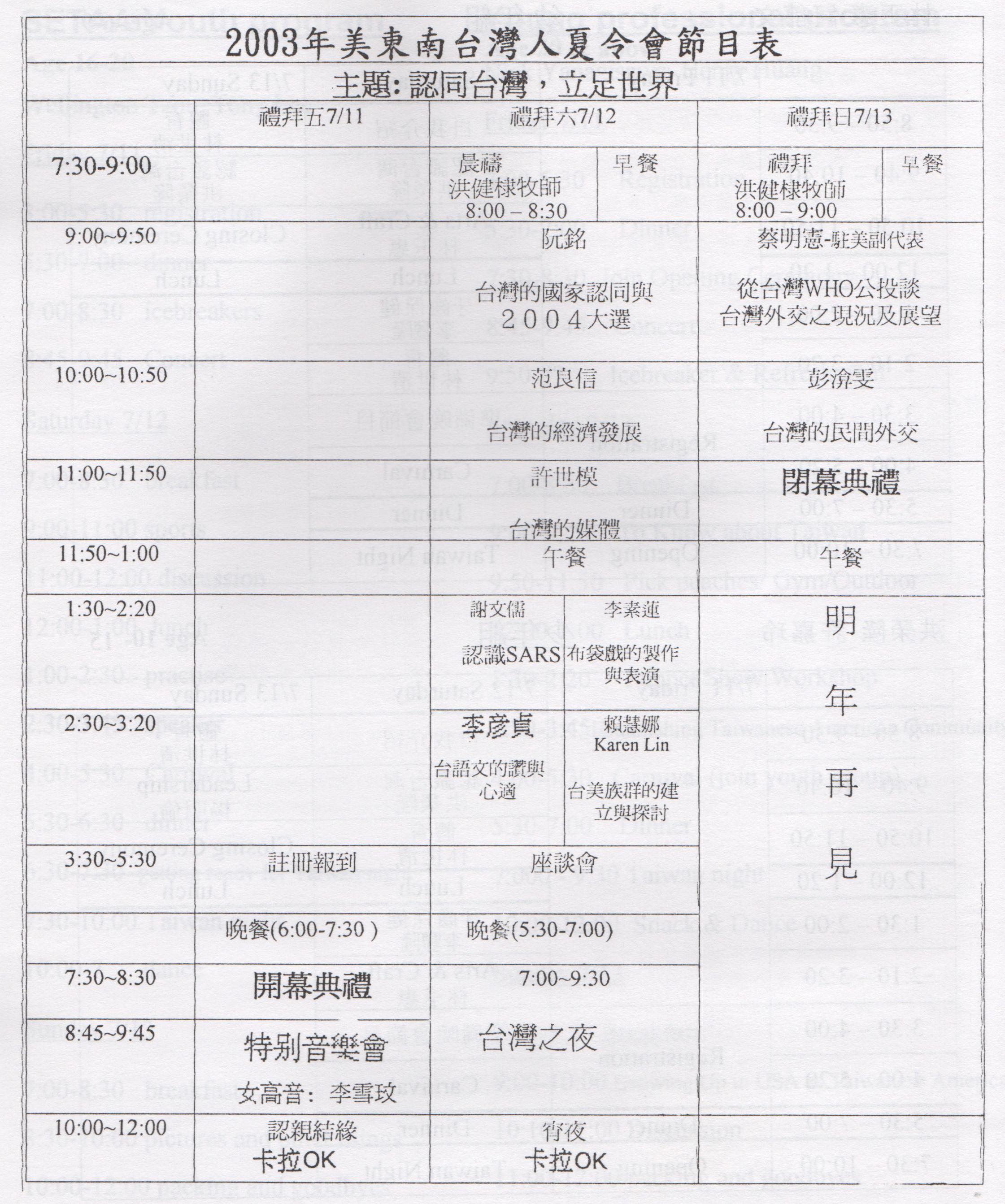 2003年美東南區台灣人夏令會義備委員會 敬上