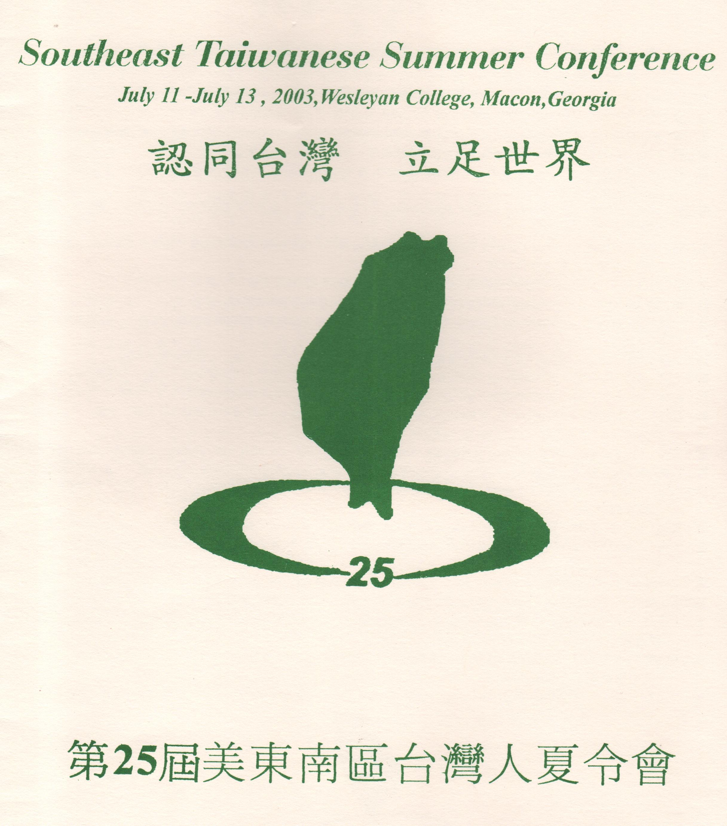 【本報亞特蘭大訊】美東南區第廿五屆夏令會由亞特蘭大同鄉會召集,於七月十一日 在Macon, Georgia開幕,七月十三日圓滿落幕。今年各地的台灣人夏令會因台灣國內 SARS疫情而影響到出席率,但從東南區各地前來參加的鄉親,仍有大約兩佰多人左右。