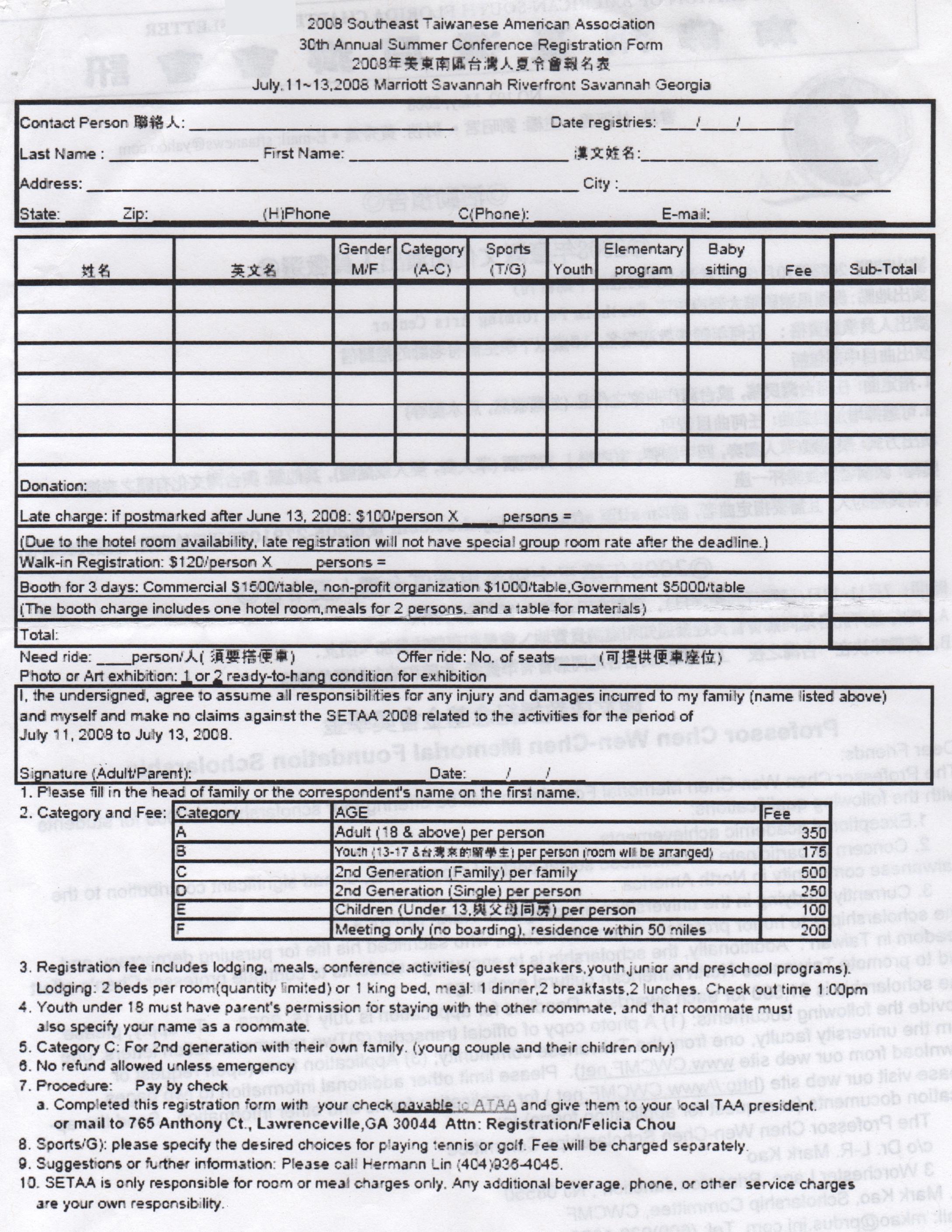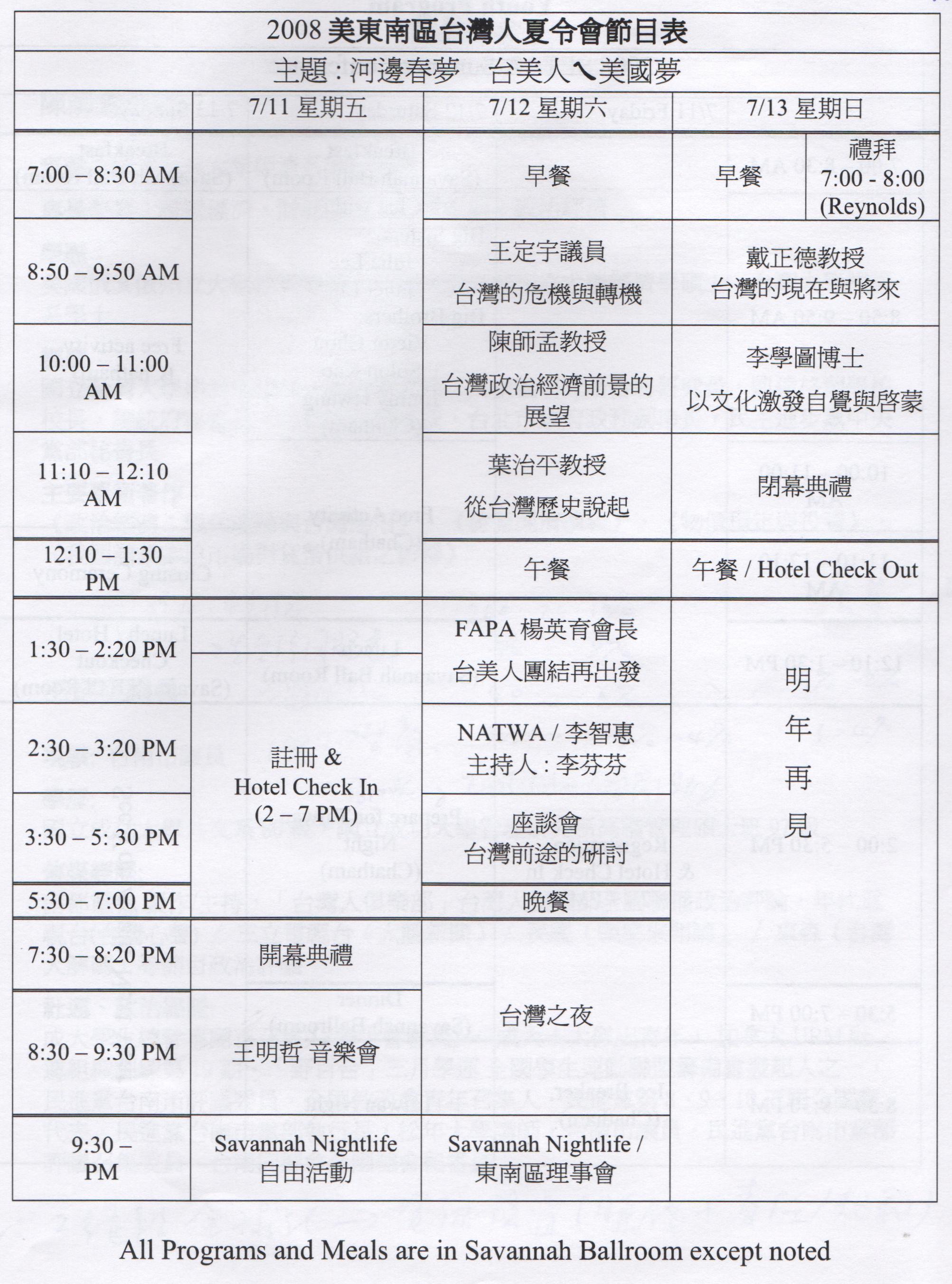 2008年第三十屆美東南區台灣人夏令會籌備會