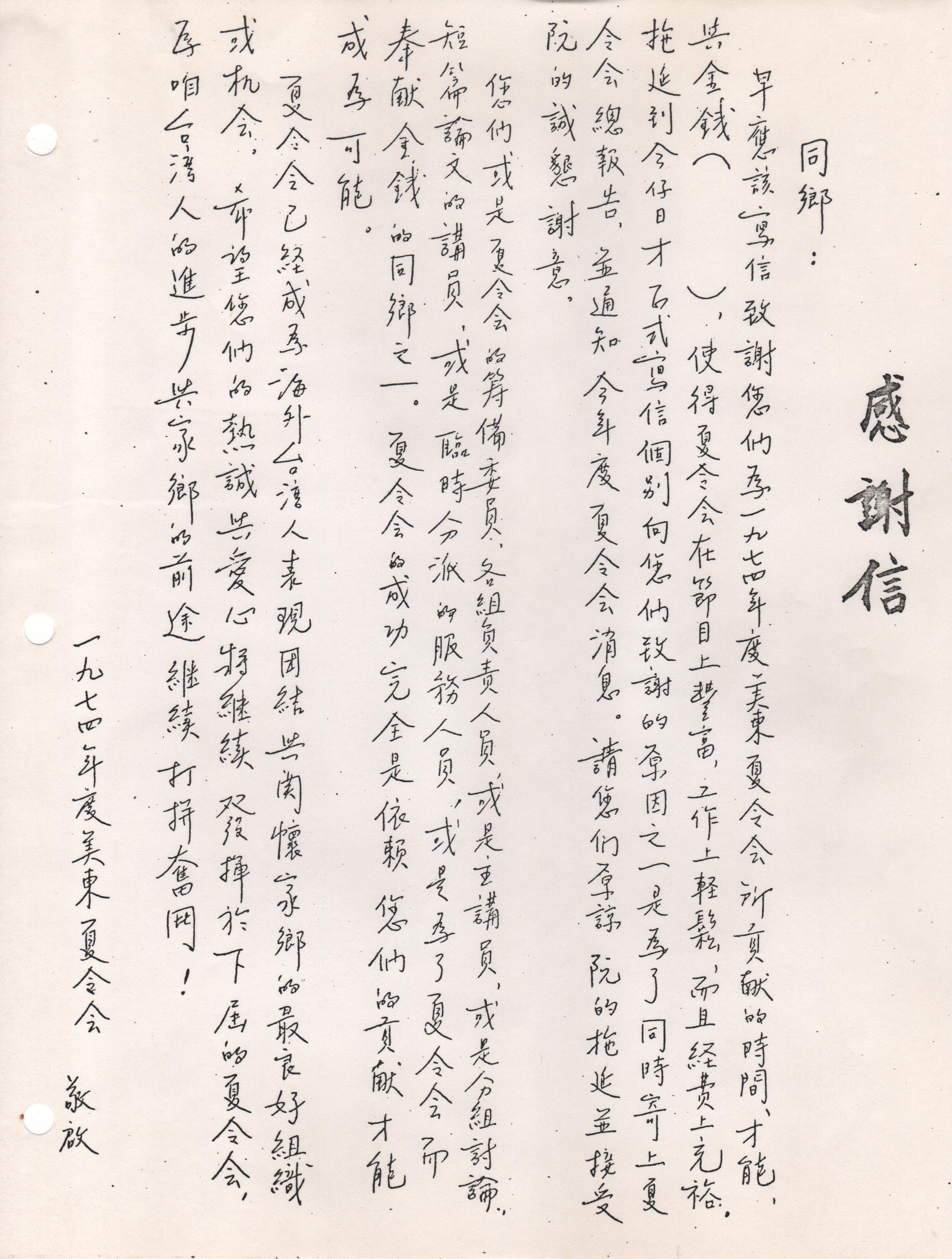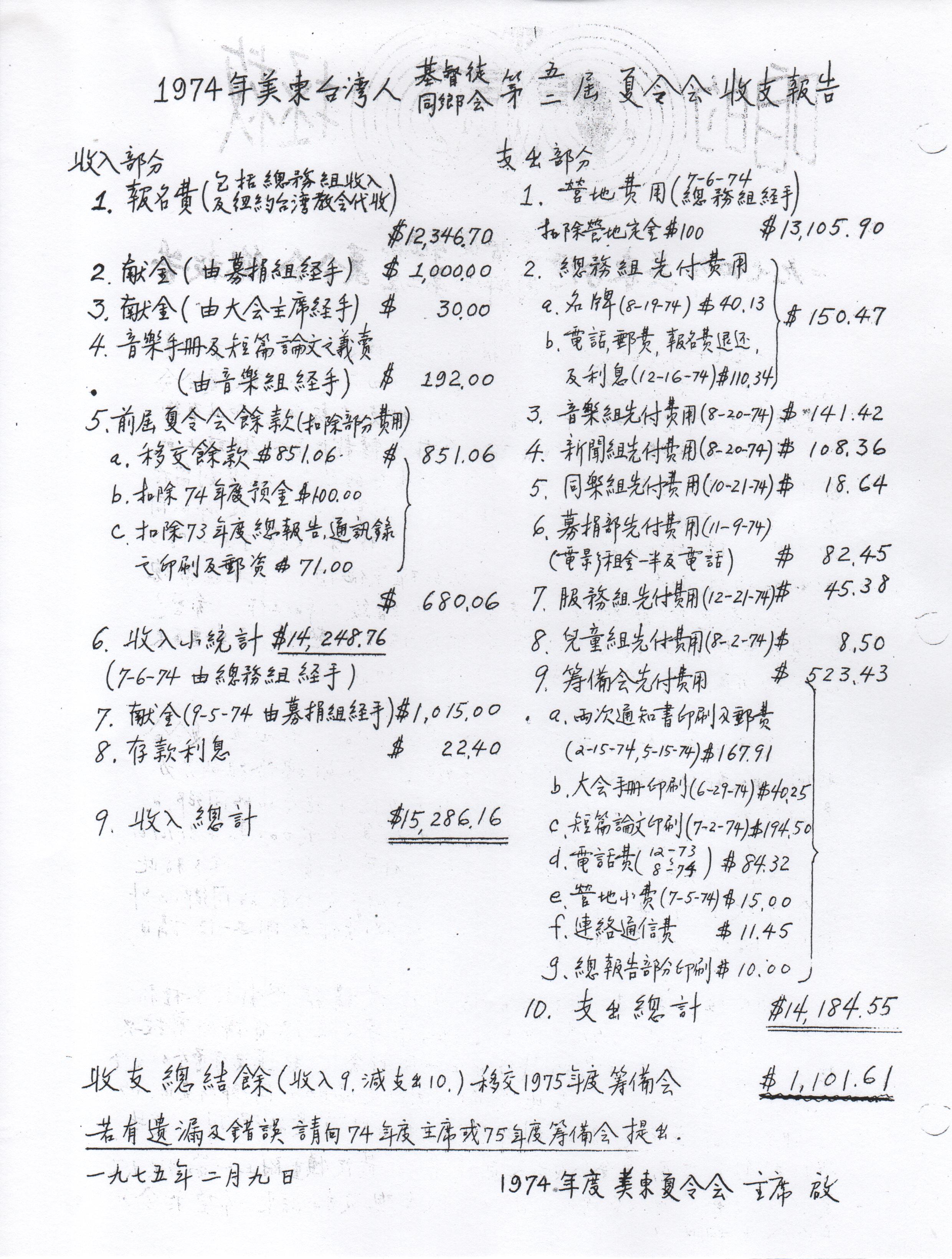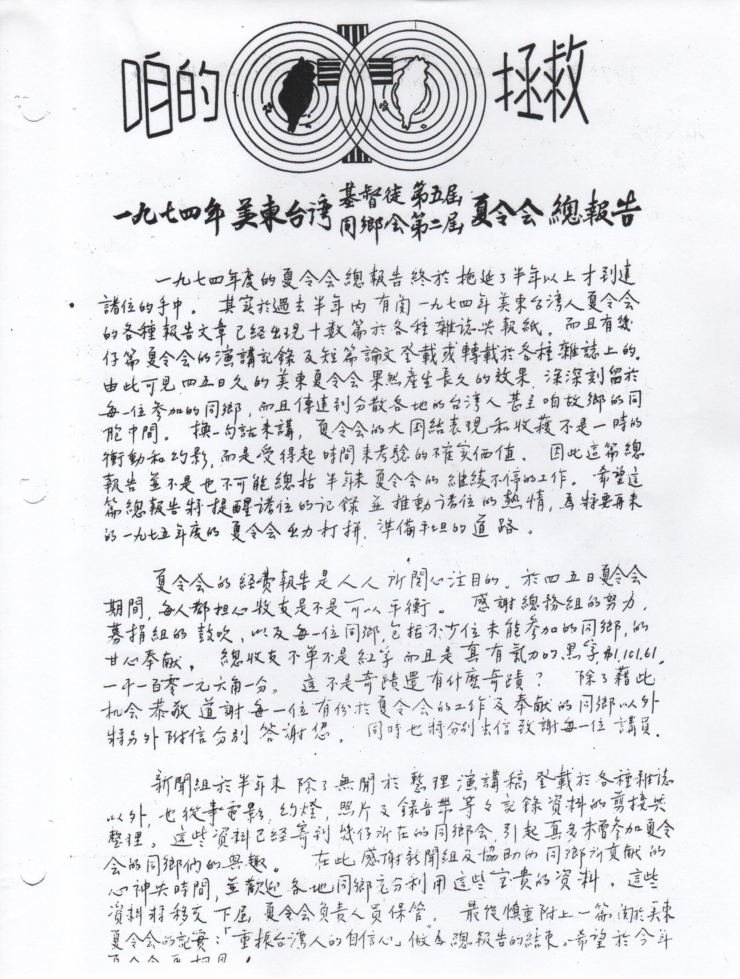 1113. 美東台灣人夏令會1974手冊 / 美東台灣人夏令會 / 07/1974/Magazines/雜誌