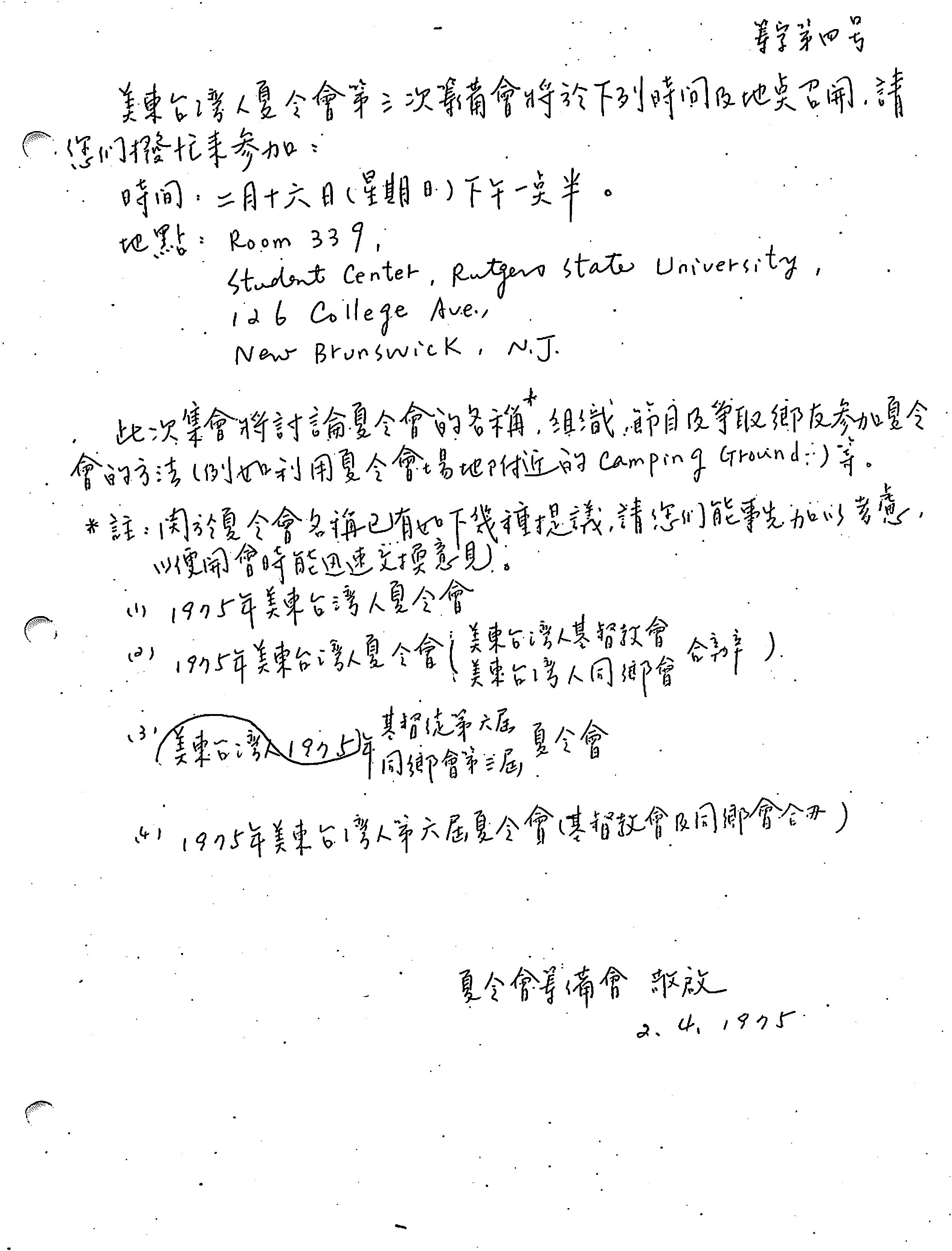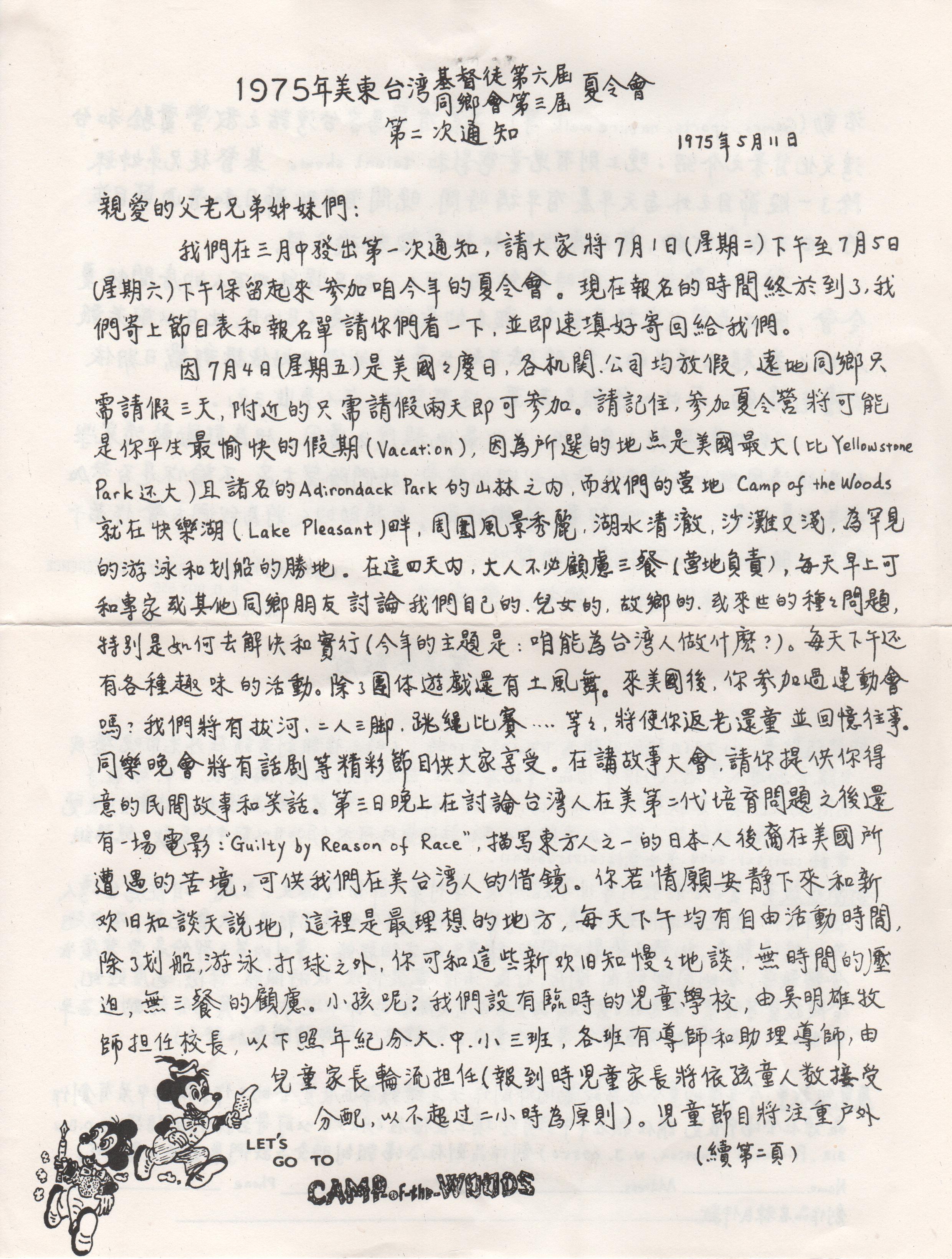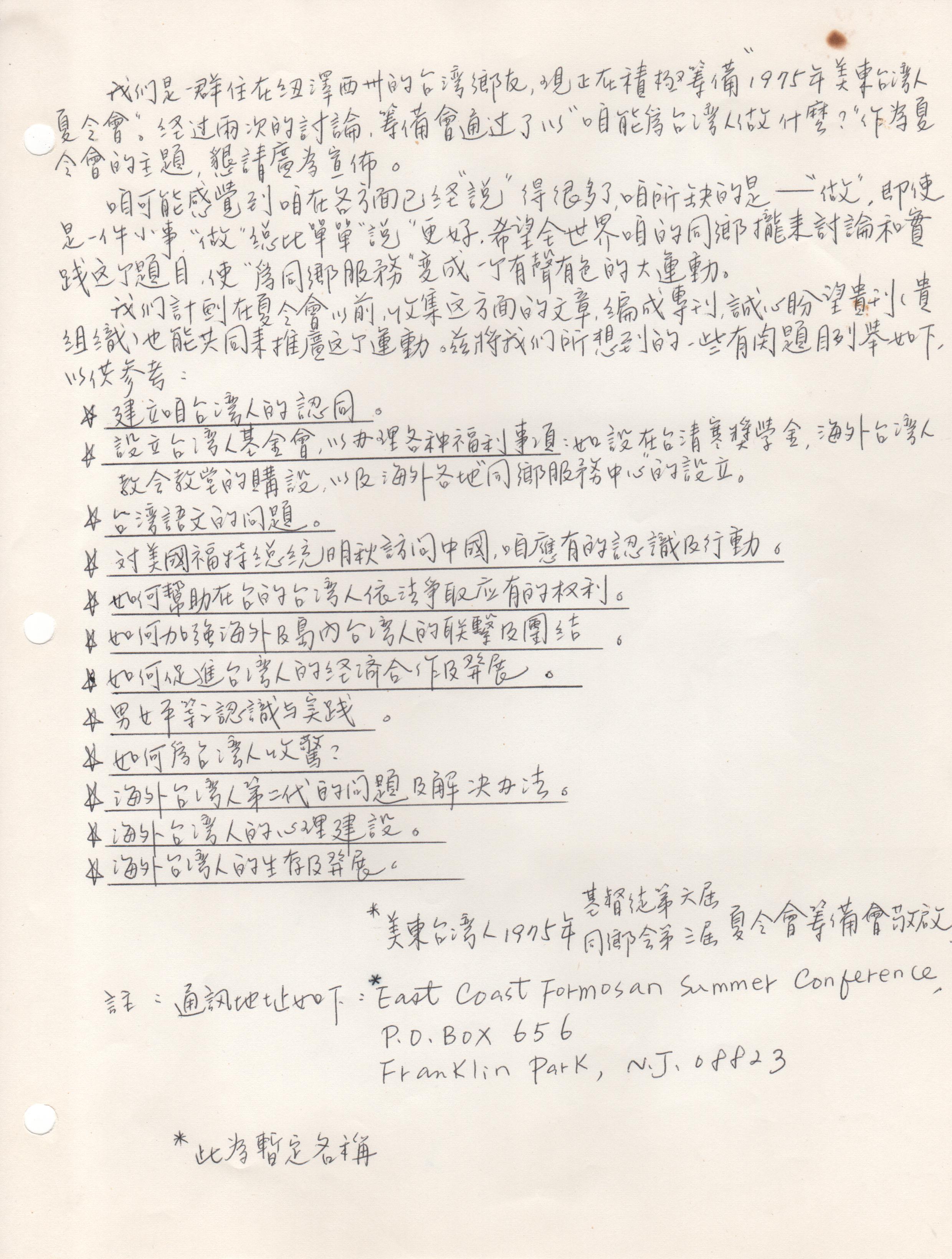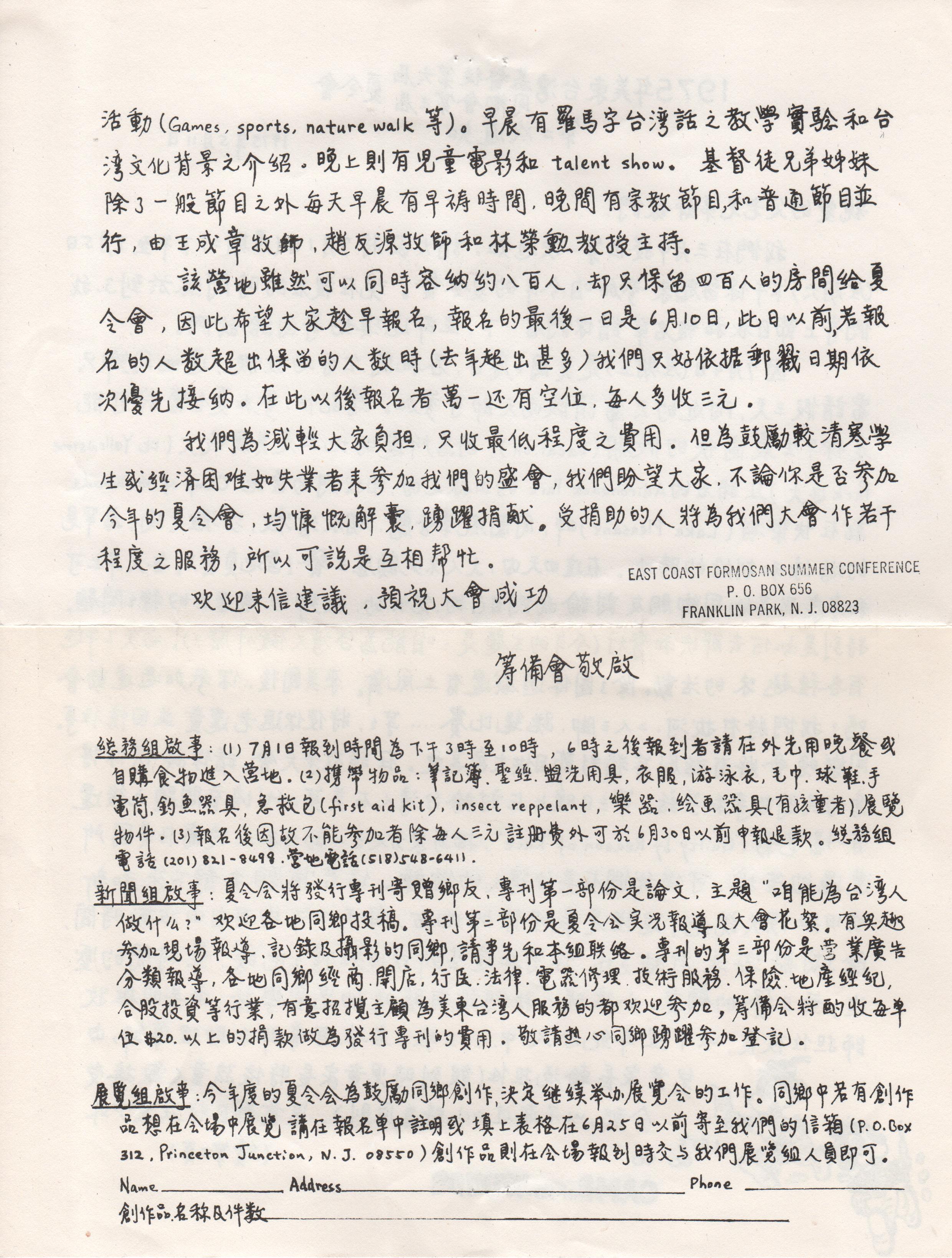 1114. 美東台灣人夏令會1975手冊 / 美東台灣人夏令會 / 07/1975/Magazines/雜誌