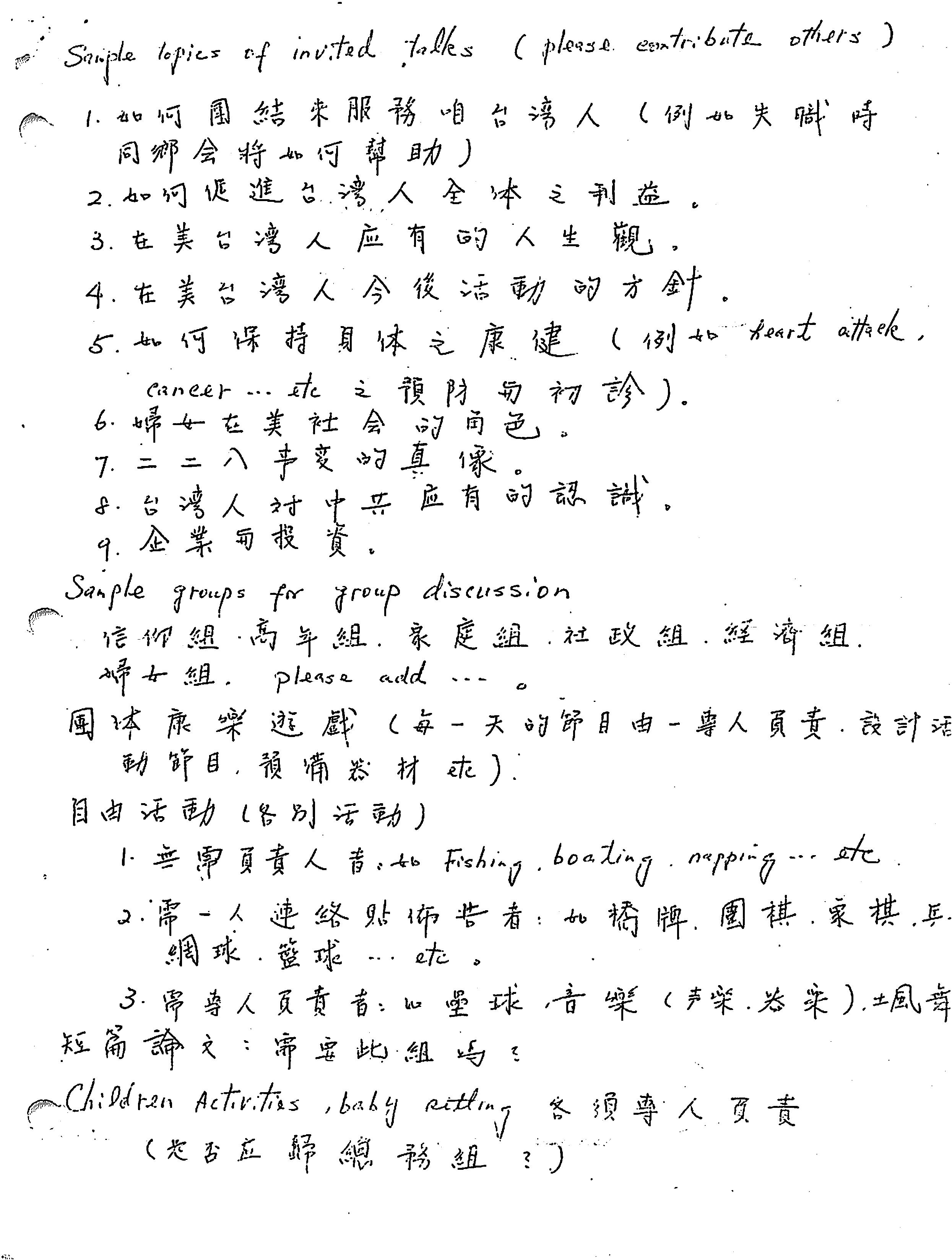 • Activities of Taiwanese American Organizations