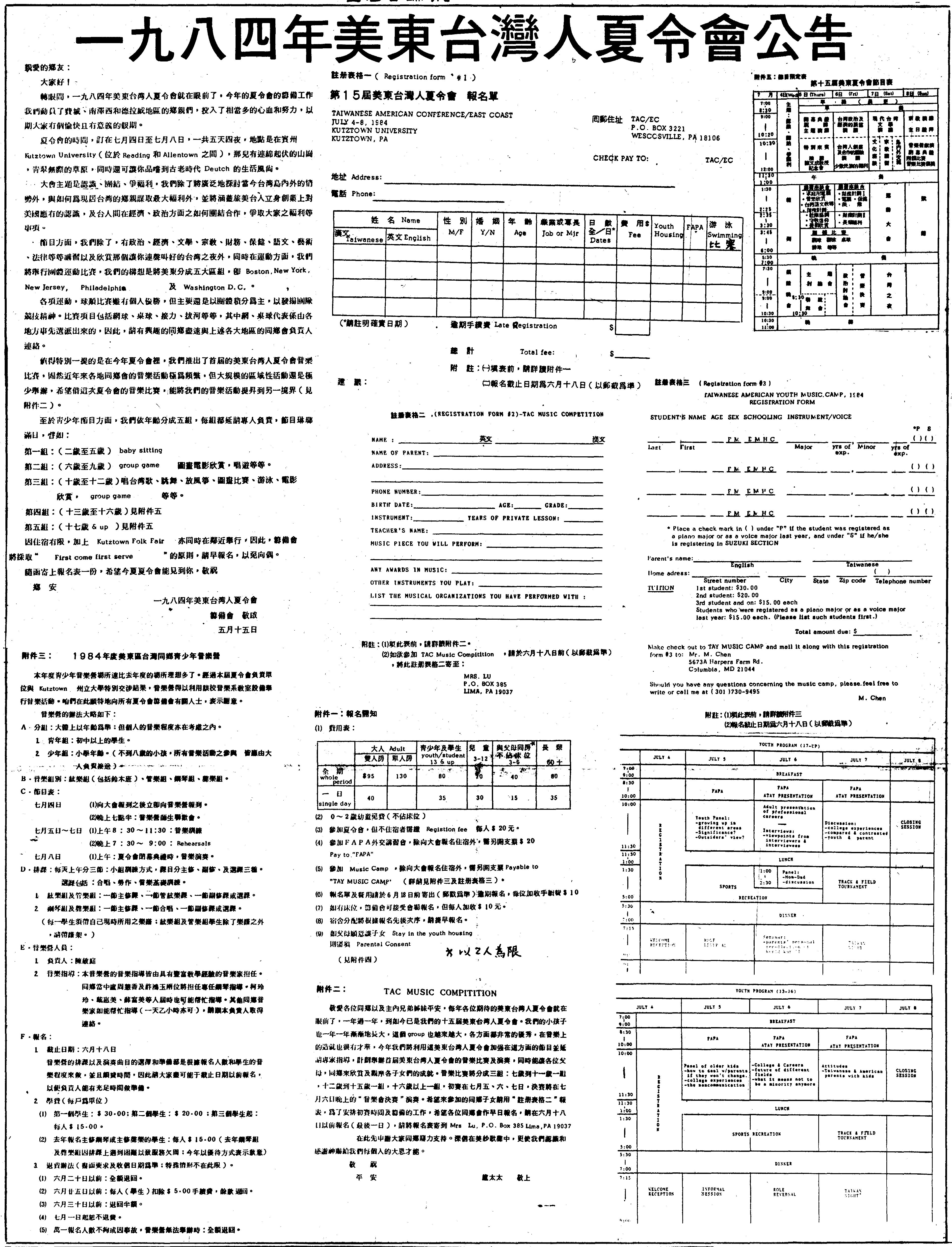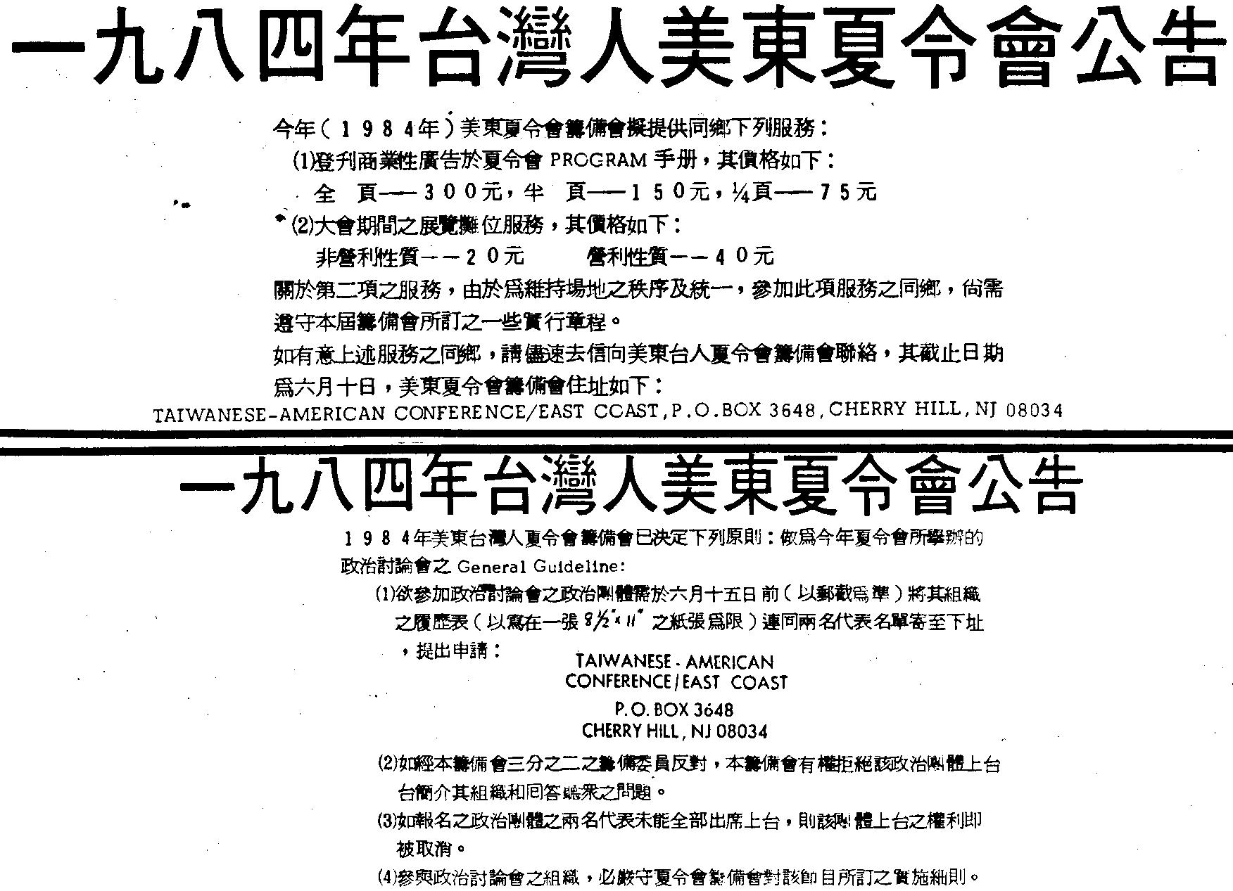 —九八四年美東台灣人夏令會公吿