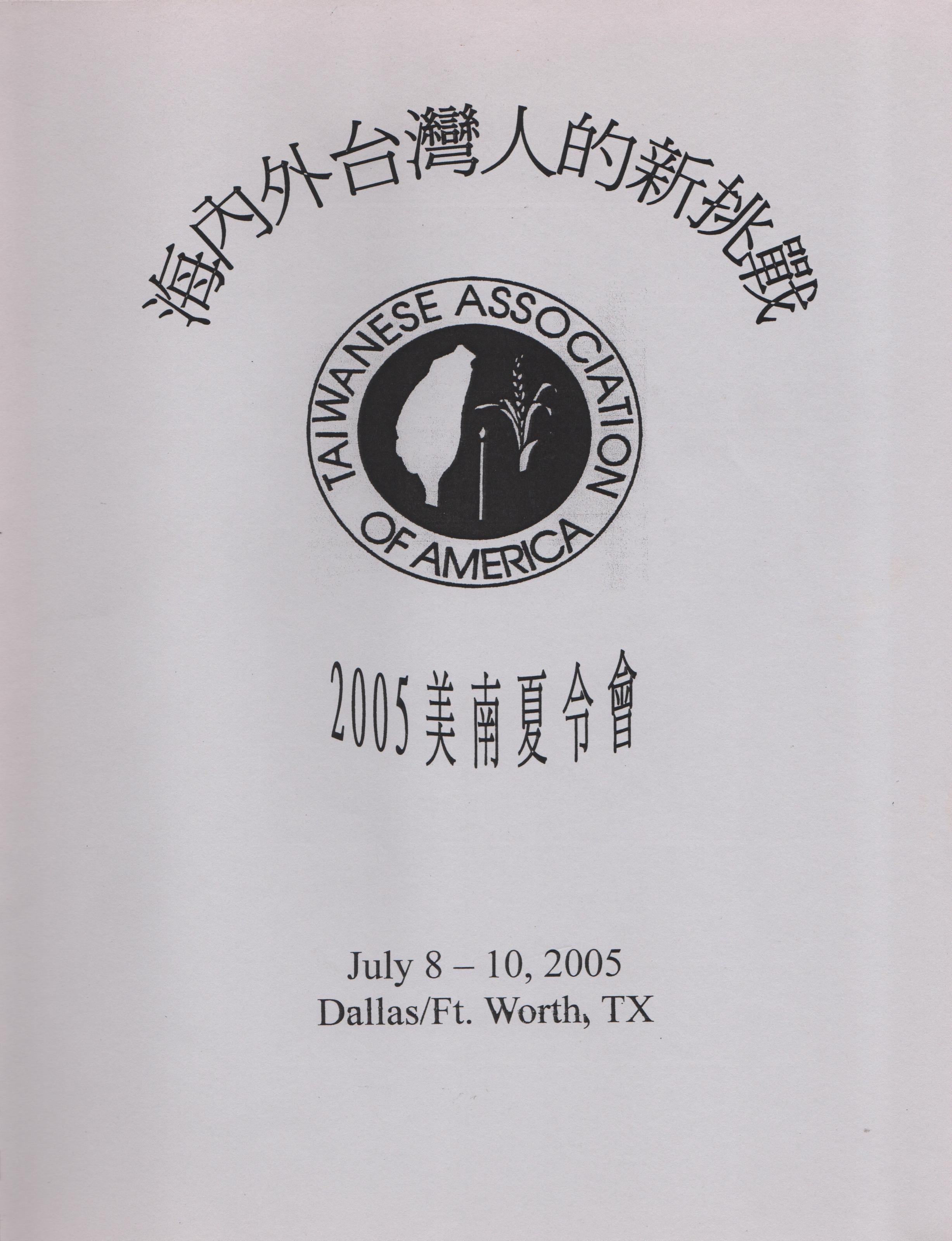 【阿賢•達拉斯報導】由美南地區八 大台灣同鄉會聯合舉辦的2005年美南夏 令會於七月八日至十日在Dallas/Ft.Worth Airport Marriott South Hotel 舉行。七月八 日爲報到與認親結緣的輕鬆時刻。大會開 幕於九日上午,由總幹事葉鴻振與主辦單 位達拉斯台灣同鄉會會長王天惠揭開,以 往美南夏令會都由第一代台美人主持,今 年則第1.5代的年輕人陳婉宜小姐擔任。 今年夏令會的主題爲”海內外台灣人的 新挑戰”,現任FM91.3嘉義之音廣播電 台新聞部主任,<戰略台灣>節目主持人凌 子楚爲主講人,凌先生以他在電台主持節 目的招牌開場白『今日的新聞是明日的 歷史,歷史是台灣人的八字,八字是要自 己寫,勿通給別人寫』來開場,他用蔣 渭水先生的名言“台灣的歷史像藍色的 迷夢、台灣人在光線前尋找光線、台灣人 在冤仇前化解冤仇”來描述台灣人的現 狀,台灣近年歷經日本佔領、228事件、 白色恐怖以近年的美麗島事件,就如藍 色迷夢般時起時落。台灣人長期受國民黨 的恐共教育,以致出現如扁政府在選前談 台獨選後嫌台獨以70%以上的人認同 自己是台灣人,但是贊成獨立的卻不到一 半的現象,被嚇得就如光線已在眼前卻不 敢睜眼看,仍然閉著眼要尋光線,台獨不 是只喊口號,而應有一套政策。有權有錢 的外省人,一直恐嚇一般外省人,主張台 獨的人要把外省人趕盡殺絕,事實卻相反,台灣人肚量很大,就如在冤仇結成前 就已化解冤仇。凌先生認爲台灣人最大的 挑戰爲沒有自信,因爲沒有國防即可戰的 軍隊,所以沒有自信,雖然台灣位於亞太 重要戰略島嶼群,在美日安保範圍內,不 過台灣應建起自己的防衛力,台灣雖有20%的國防預算,但軍公教的福利佔了國 防預算很大的比例,必須更正,除了加強 國防外,還需培養年輕一代的可戰之士。 台灣政黨重組’政治版圖改變,台灣面臨 的危機包括:執政黨立場、政策搖擺-沒有 政黨想當在野黨,由於泛藍立委的立法加 但書,形成表面上是民進黨執政-實質上 卻是泛藍執政的現象。凌先生認爲夢想不 會使人偉大,堅持夢想才會使人偉大,台灣人有自信就可堅持夢想。凌先生以他的 夢想”不久的將來可以慶祝屬於台灣自己 的國慶”結束他精采的演講。