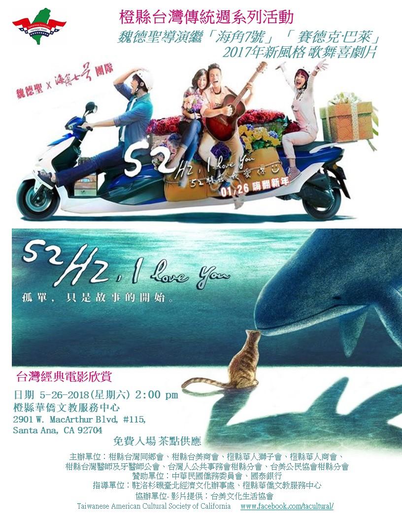 | 台灣經典電影欣賞「52 Hz我愛你」地點:橙縣華僑文教服務中心 | |||