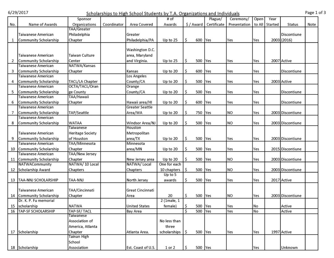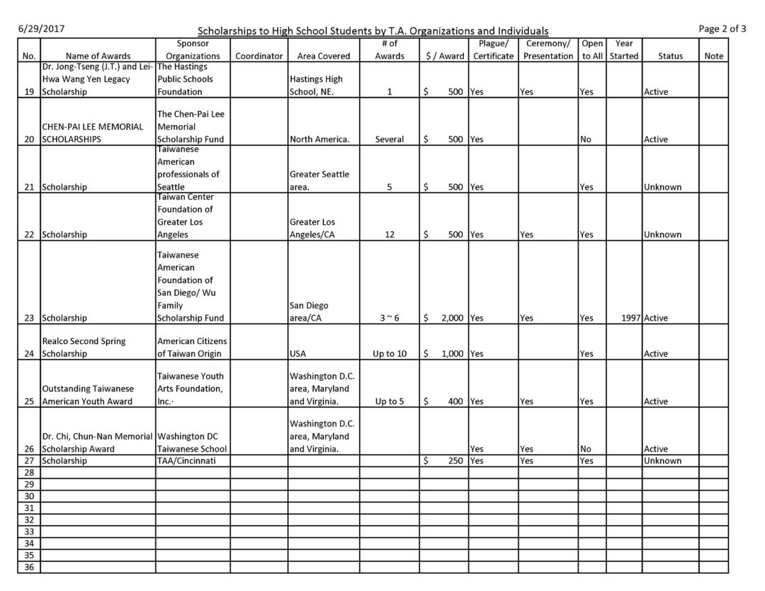 - 64. Taiwanese Import and Export Association of America, Inc. Scholarship Awards 美國台灣人進出口公會獎學金
